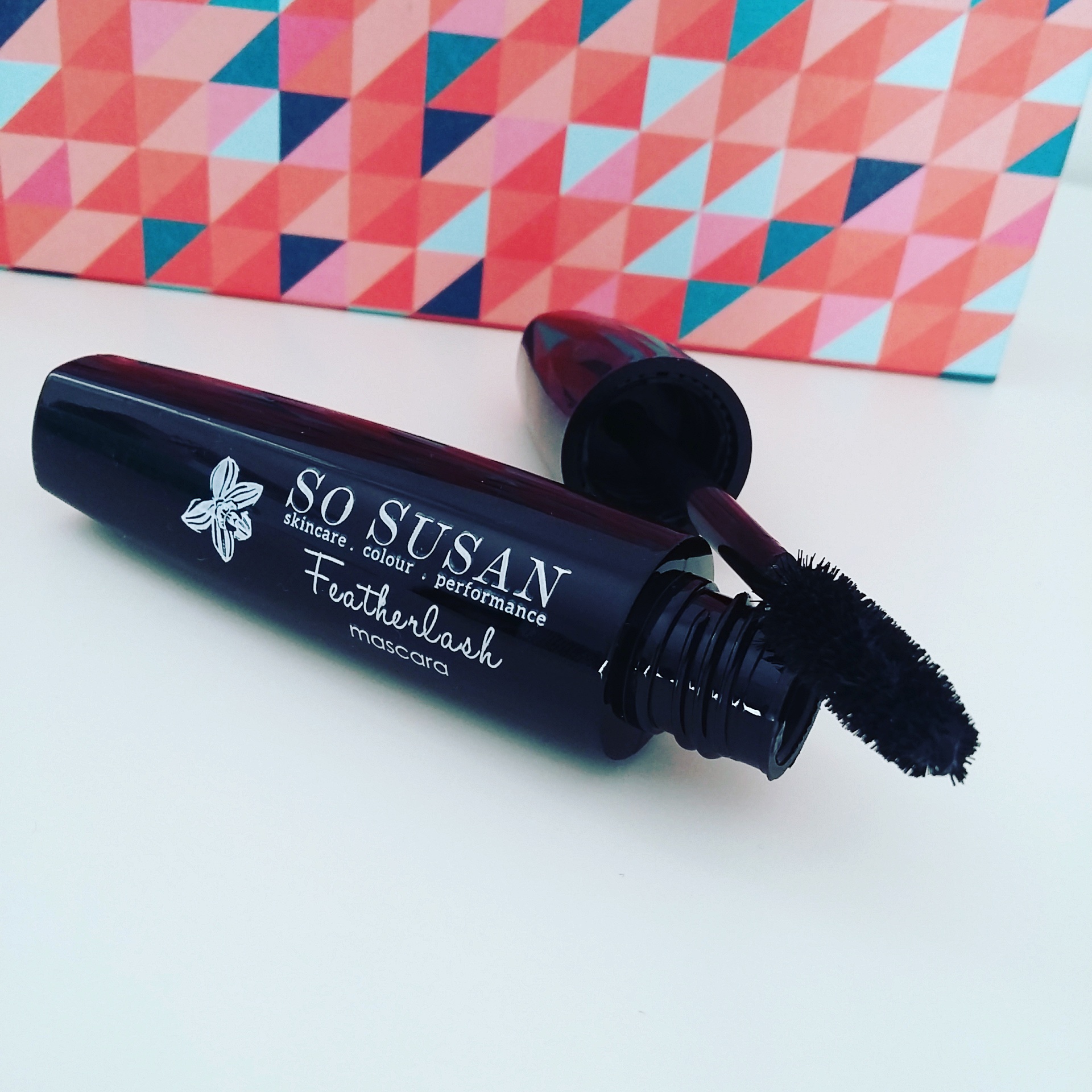 Toujours avec 5 produits et le livret, la box d’Octobre est l’une des boîtes que je préfère. Le design est so girly et graphique avec des petits triangles dans les teintes roses/orangés et bleus. Comme la précédente, ça change de l’éternelle boîte cartonnée.