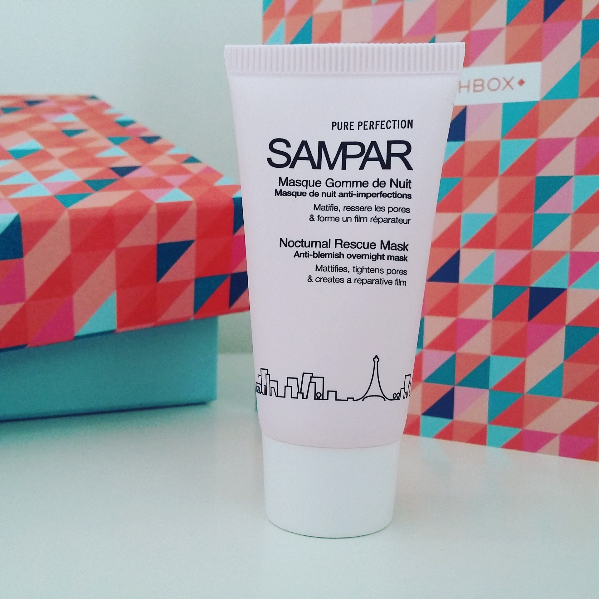 Ce mois-ci encore la boîte ne contient pas de petit sac en tissus, c’est une boîte colorée au design très graphique.