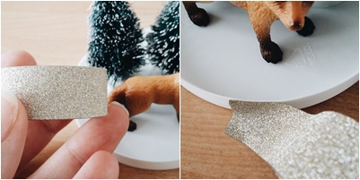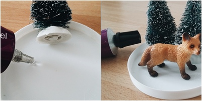 Astuce : Si vous ne voulez pas acheter de la fausse neige, vous pouvez également mettre des paillettes et un peu d’eau, ça rend très bien!