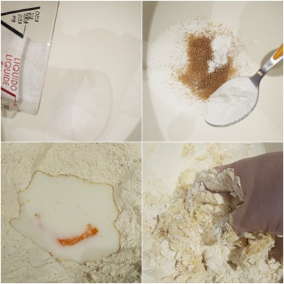 Étape 2 : Creusez un puits au milieu de votre mélange puis incorporez le jaune d’œuf, le beurre mou et le lait.