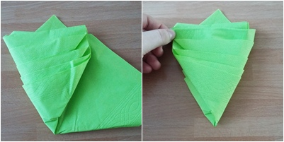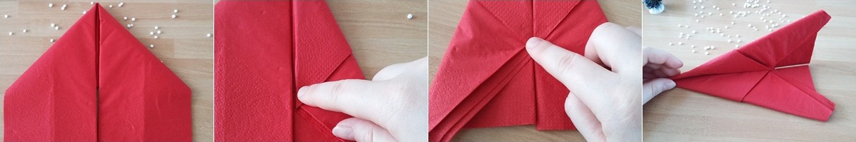 Étape 3 : Prenez la pointe à la toute droite et ramenez-la vers le milieu et faites de même avec le côté gauche. Vous obtenez alors une flèche.