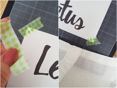 Étape 3 : Scotchez votre feuille sur votre carton ou sur votre plaque et glissez-la à l’intérieur du sac.