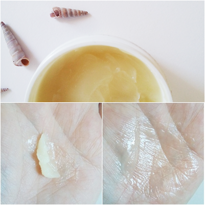 Pour l’utiliser rien de plus simple : on prend une petite noisette que l’on fait chauffer aux creux des mains. Il se présente sous forme solide mais une fois chauffée, la crème se transforme en huile.