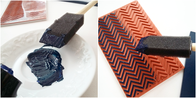 Étape 1 : À l’aide de votre brosse en éponge, mélangez votre peinture et appliquez-la sur votre tampon de fond.