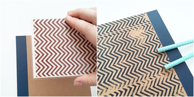 Étape 2 : Disposez votre tampon de fond sur votre carnet en lissant et aplatissant les 4 coins. Forcément je n’ai pas assez mis de peinture sur ma plaque c’est pourquoi j’ai des trous par-ci par-là, mais ça fait un petit aspect rétro.