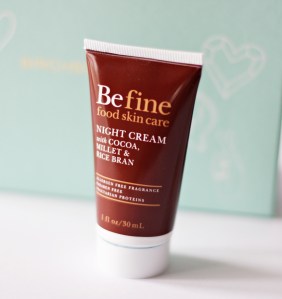 Utilisation : Bon alors moi je n’y vais pas y aller par quatre chemin, cette petite crème n’est pas mon coup de cœur. Désolé Birchbox, mais je ne l’ai pas trouvé si extraordinaire que ça. Je ne l’ai peut-être pas testé dans les meilleurs conditions (les larmes y sont pour beaucoup) mais bon contrairement à tous les avis positif sur le site je ne suis pas si emballée. Bon certes, elle hydrate grâce à sa formule huile de riz/extrait de cacao/iris et graine de millet mais je n’ai pas vu d’amélioration et le ralentissement des signes du temps bof bof. Le petit plus qui aurait pu me convaincre ? Elle est formulée sans parfum, sans parabène et cruetly free. Dommage.