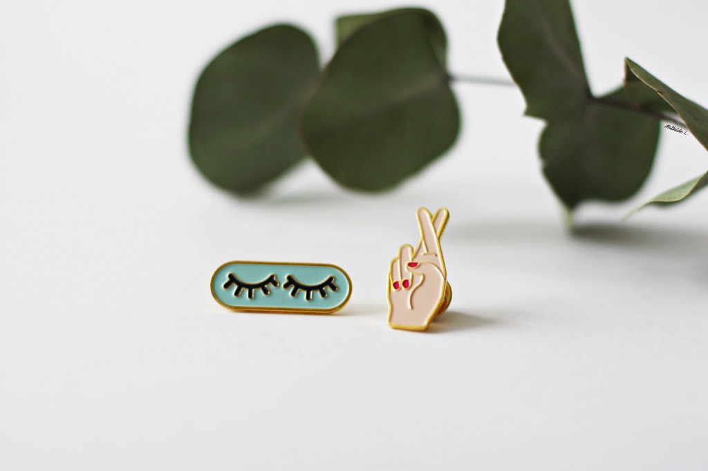 Voici mes petits pin’s ! J’ai longtemps hésité à les mettre sur ma veste en jean, vu que le temps ne s’y prête pas trop (merci la pluie). La petite main est vraiment trop chou, on dirait le design de Coucou Suzette dont j’admire le travail depuis des années. J’ai reçu les petits yeux bleus qui étaient dispo aussi en rose poudré mais j’ai préféré ce coloris pour changer un peu. J’adore !