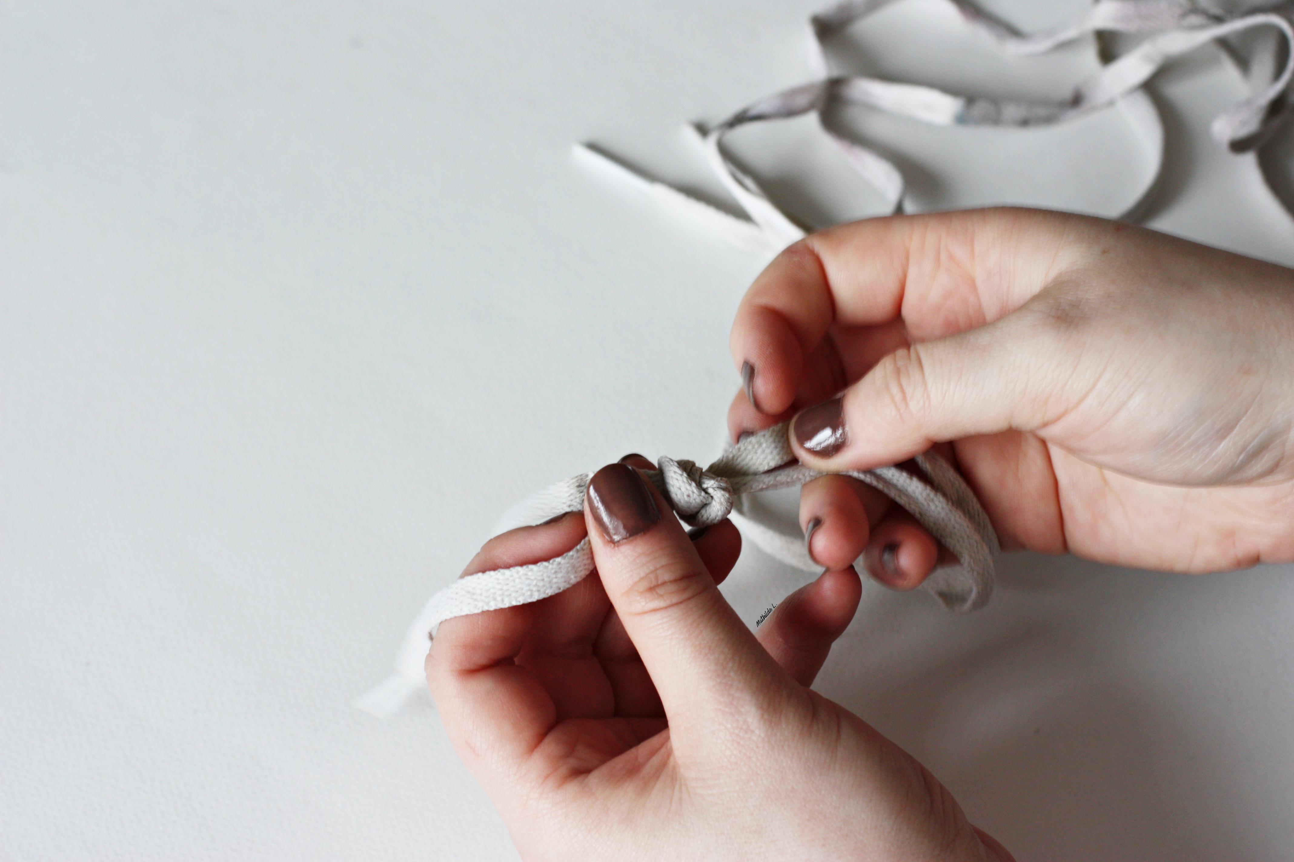 Étape 4 : Enlevez les lacets et attachez-les ensemble. Ça évitera qu’ils ne s’abiment lors du lavage. Enduisez vos lacets de dentifrice sur toute la longueur et hop en machine.