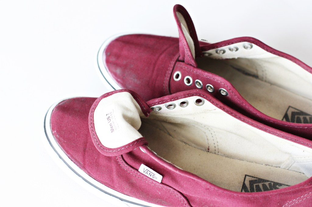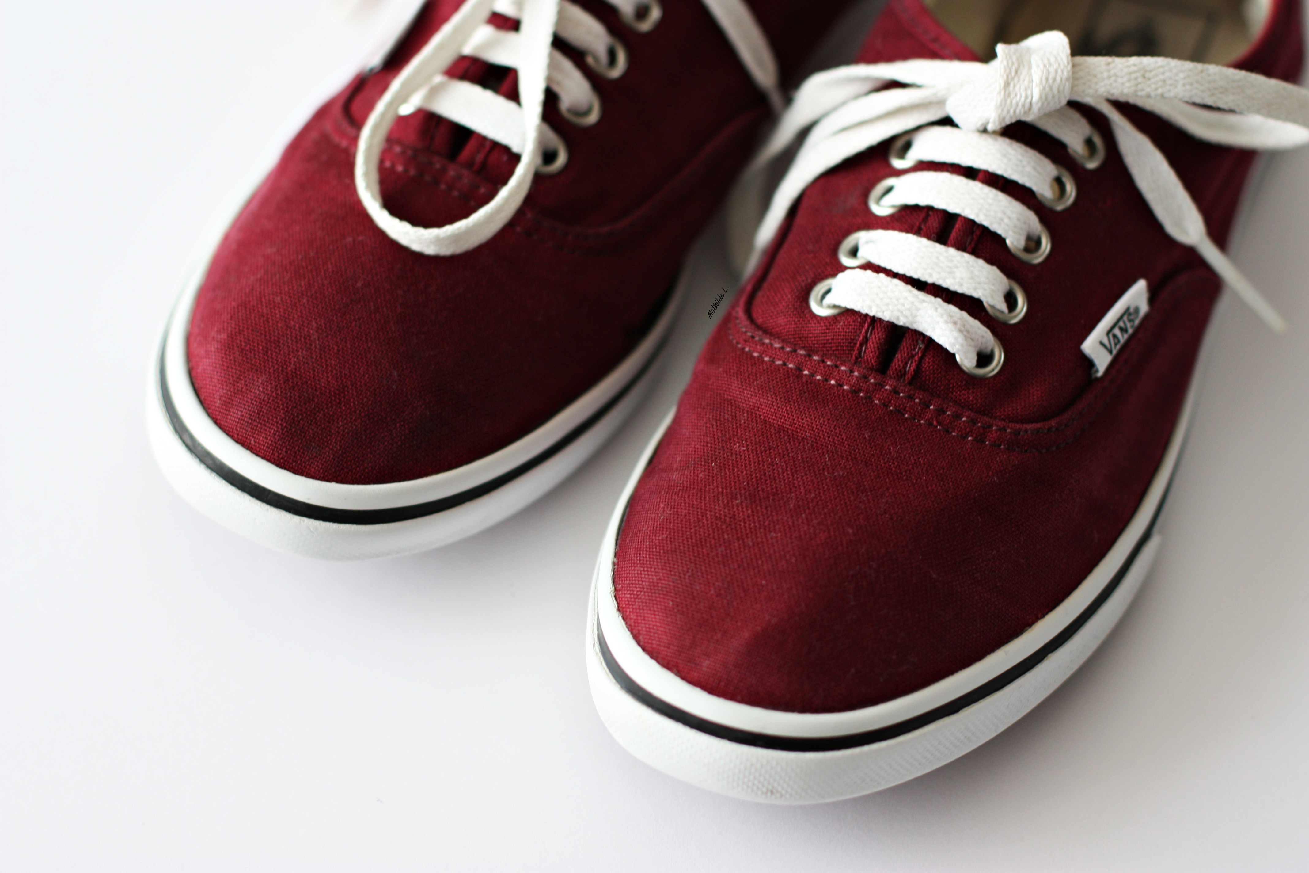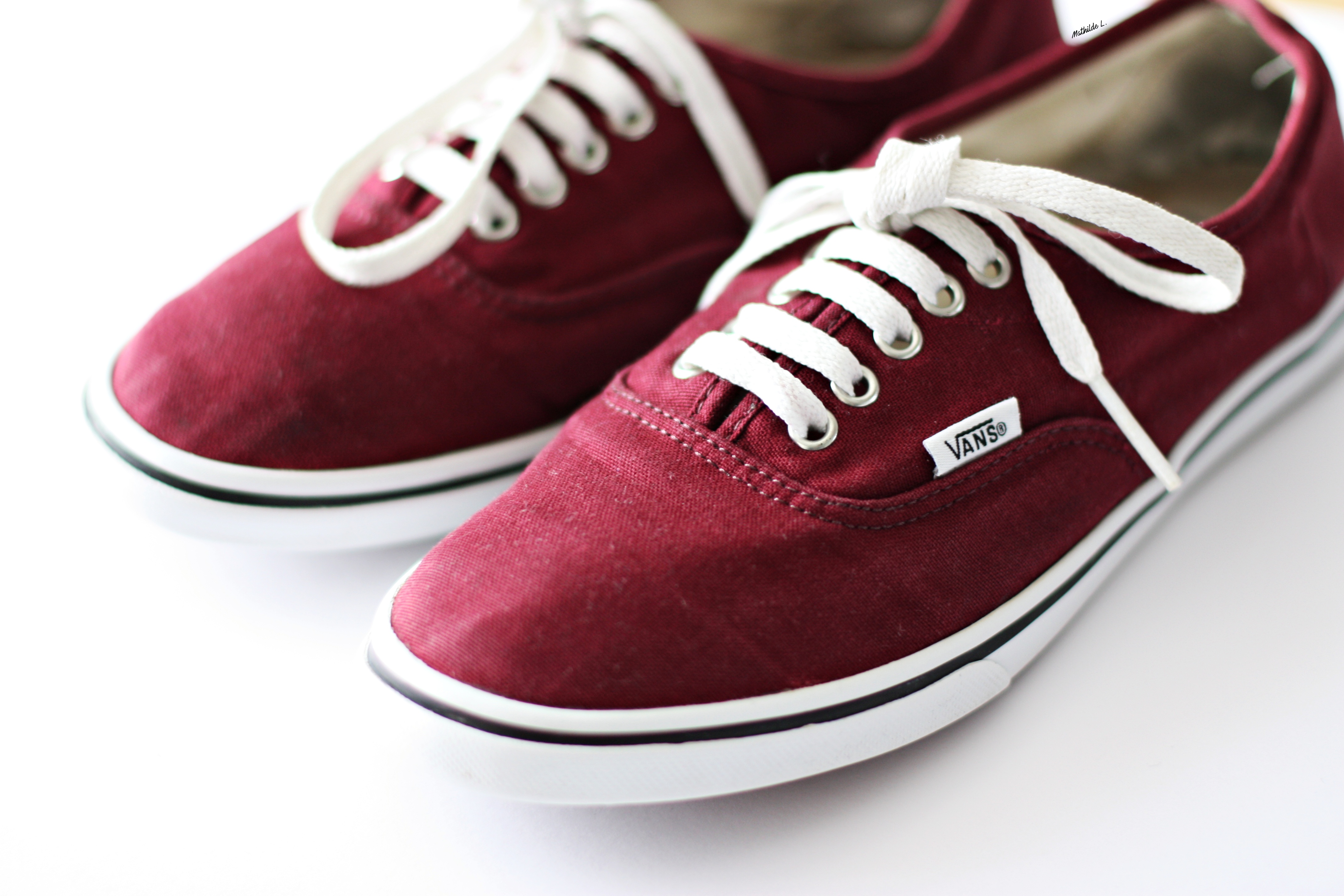 J’ai plus de 10 paires de Vans (je ne parle pas des Converses non plus) mais forcément je porte toujours les mêmes lorsque je dois sortir. Aussi ma paire de bordeaux a plus que bien vécue. La pluie, la boue, les cailloux et les traces de toutes sortes ont un peu raison de la chaussure.