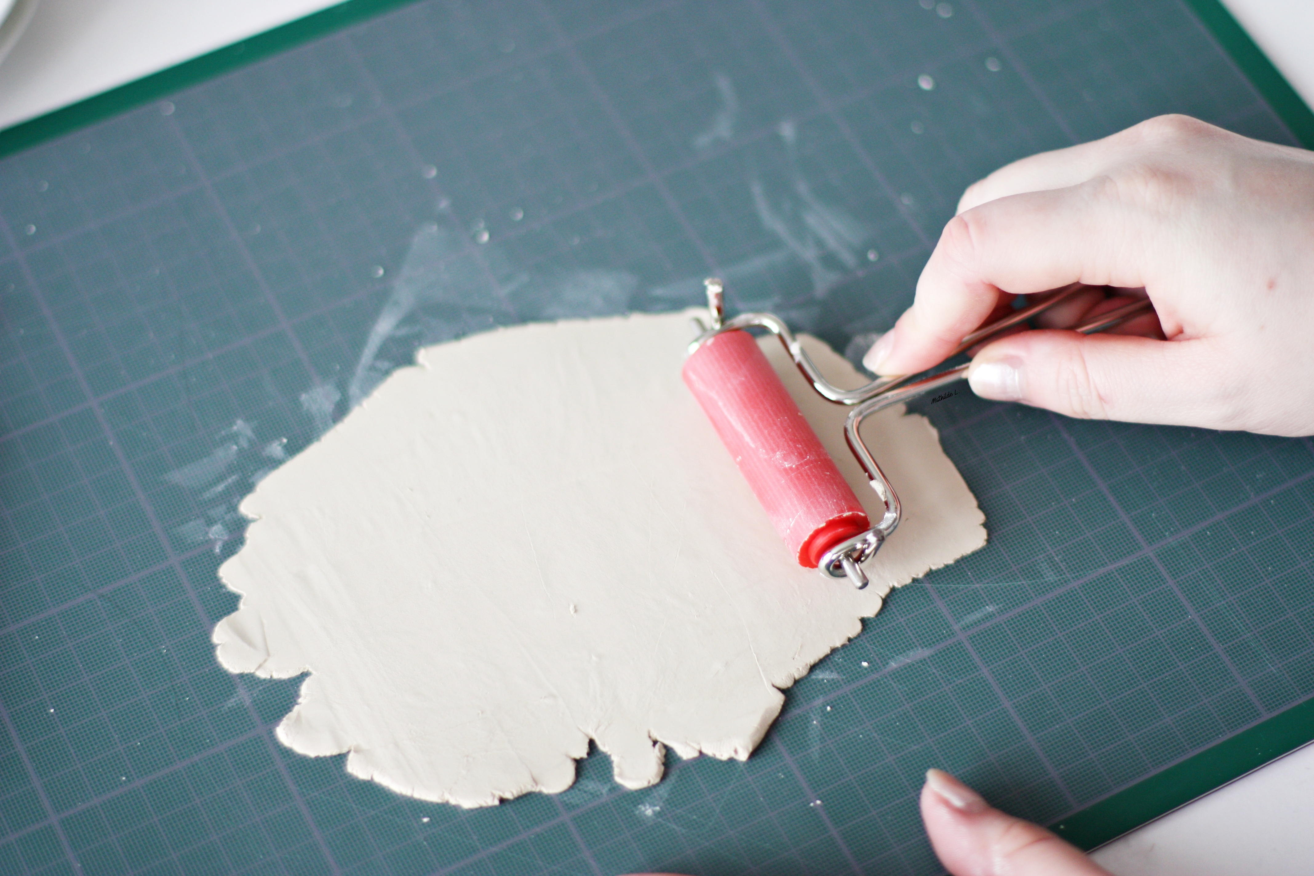 Étape 2 : Étalez et aplatissez votre pâte pour avoir une couche assez fine (environ 5/6 mm d’épaisseur). Il faut qu’elle soit suffisamment épaisse pour qu’elle ne casse pas lors du modelage.