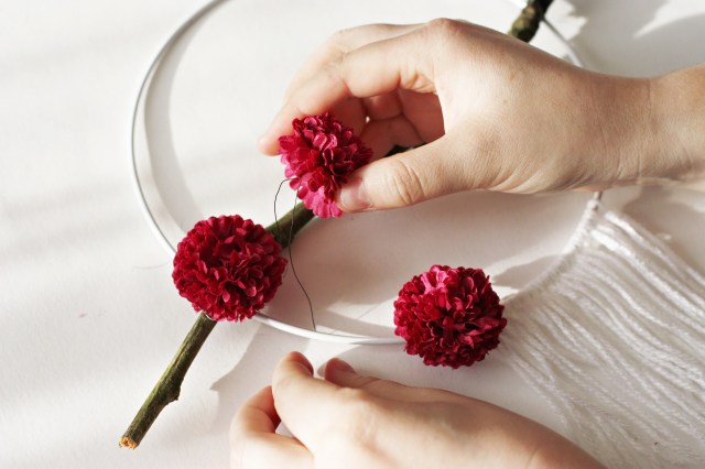 Étape 5 : Il ne reste plus qu’à fixer les fleurs. J’ai utilisé des fleurs en plastique avec des tiges de fer, mais vous pouvez très bien utiliser des fleurs fraiches.