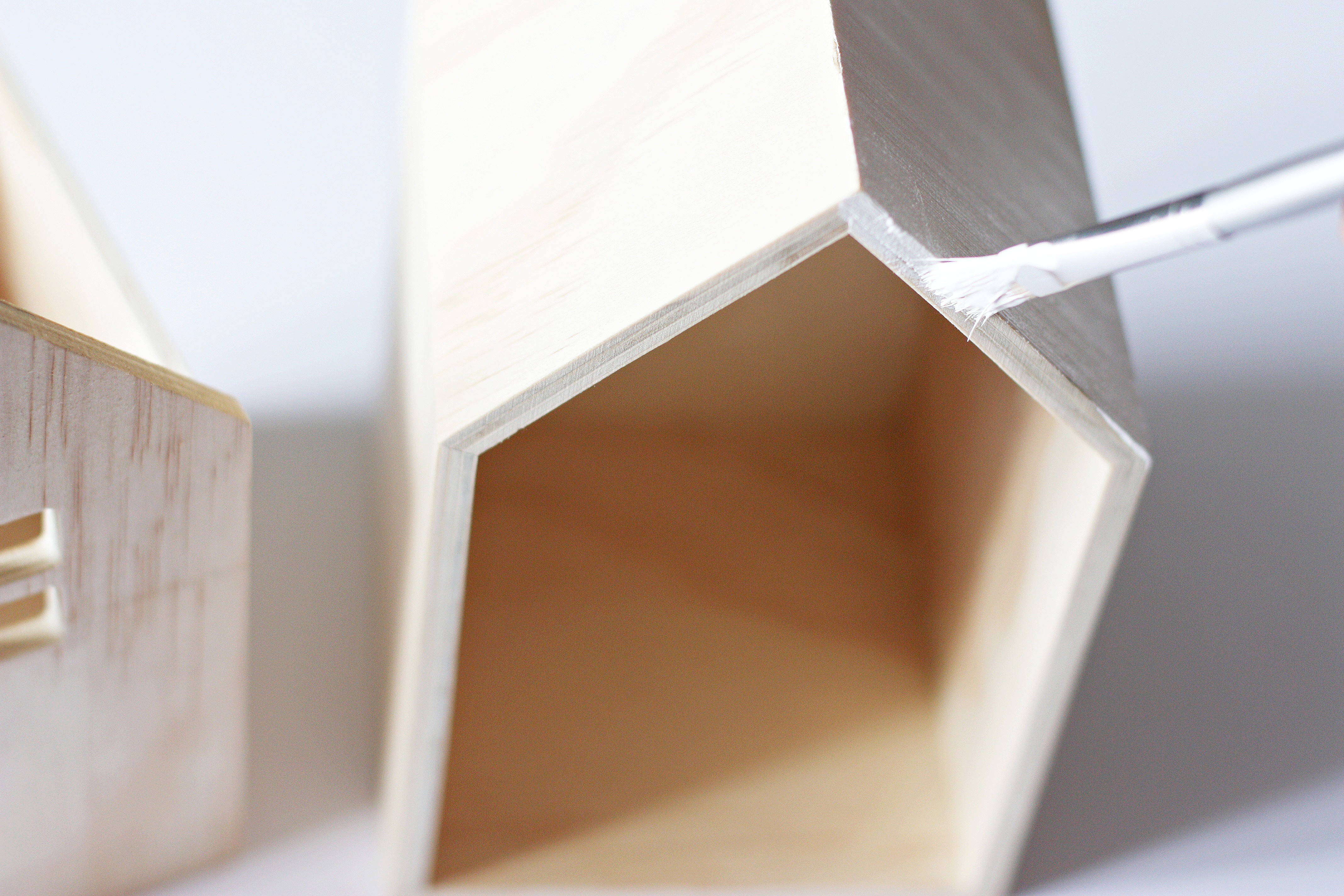 Étape 2 : Prenez votre peinture acrylique blanche ainsi que votre pinceau et commencez la peinture. J’ai d’abord peint toute la boîte en blanc et j’ai passé 2 couches. Je n’ai pas fait l’intérieur par contre je l’ai laissé brut.