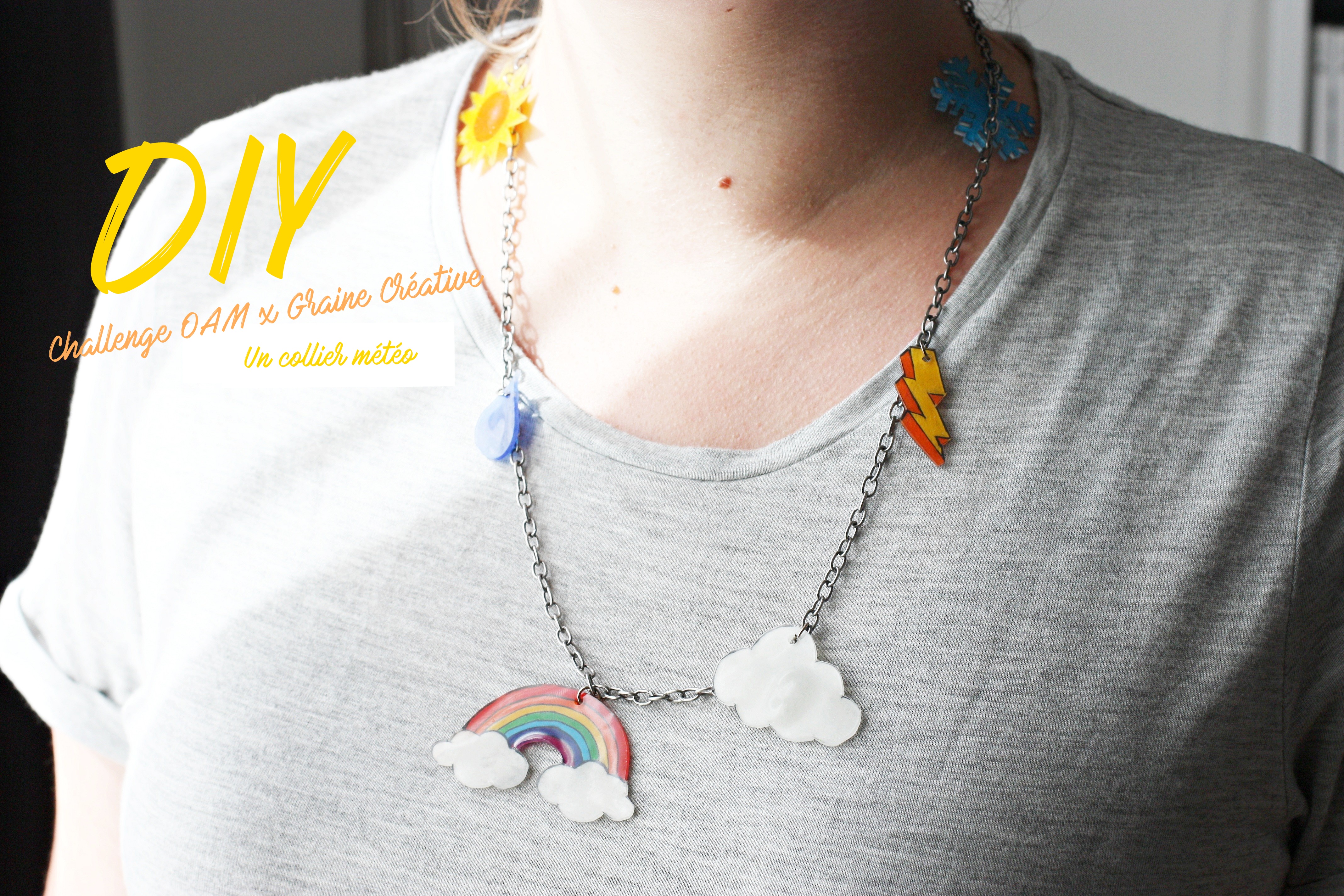 Pour une première, j’ai décidé de faire un petit collier rigolo représentant la météo ! Oui c’est coloré et sympa, c’est mon humeur du moment ! Je pense même qu’il va faire pâlir Évelyne Dhéliat ! Cette activité est à destination des enfants et franchement en moins d’une heure vous avez des résultats.