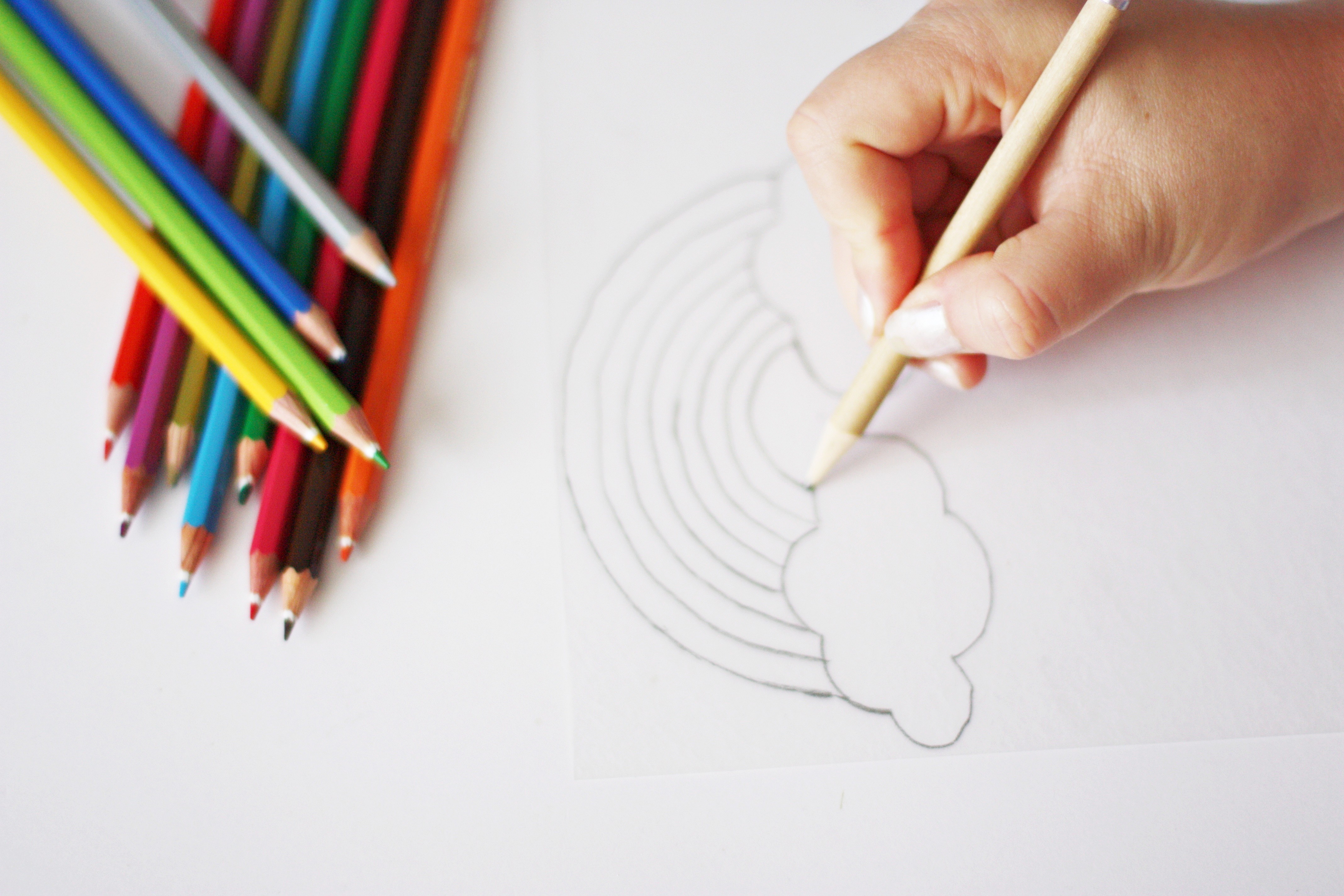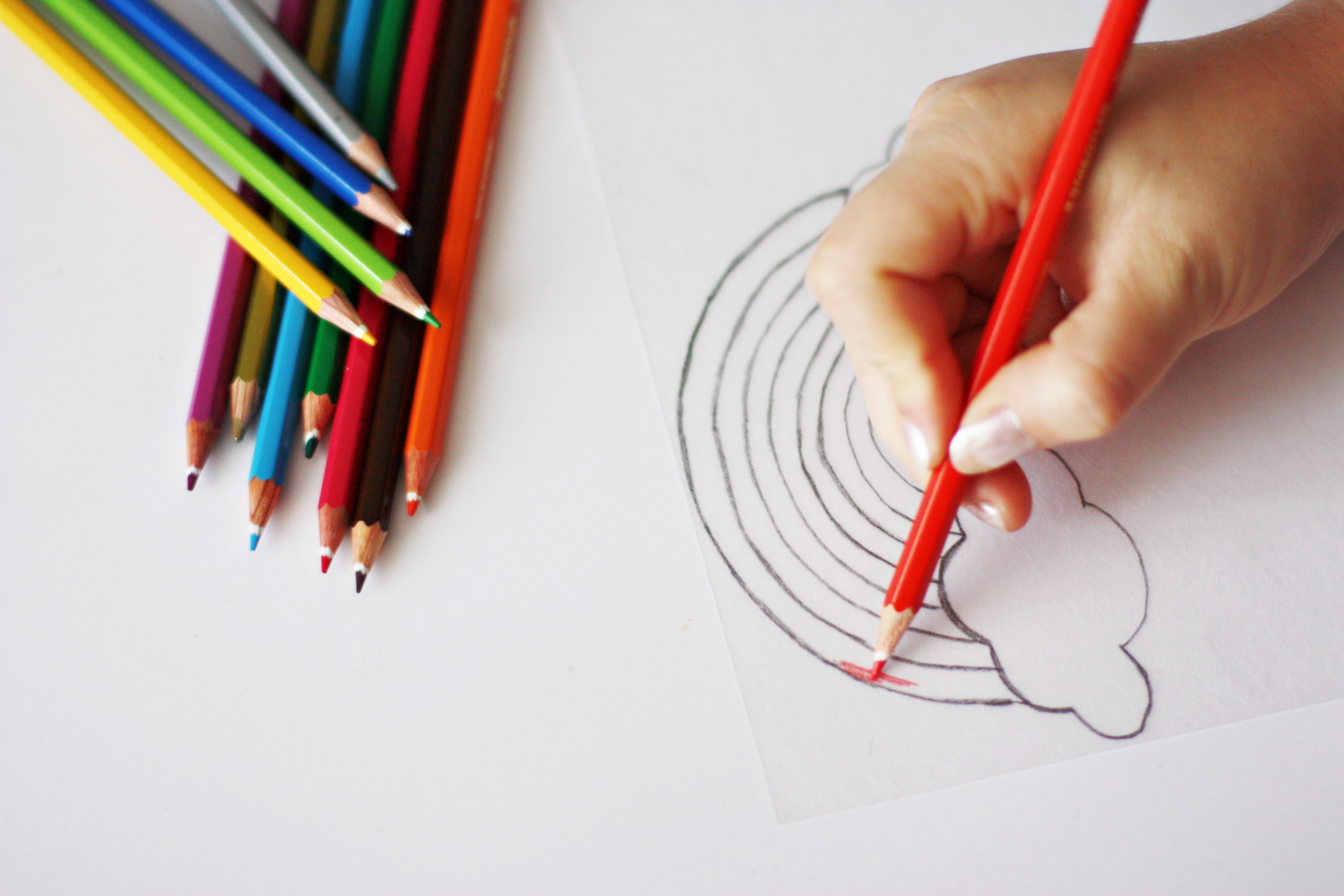 Étape 2 : Avec vos crayons de couleurs coloriez votre motif à votre guise. J’ai utilisé des crayons de couleurs classiques car je trouve que les couleurs sont bien conservées pendant la cuisson mais vous pouvez utiliser des crayons feutres.