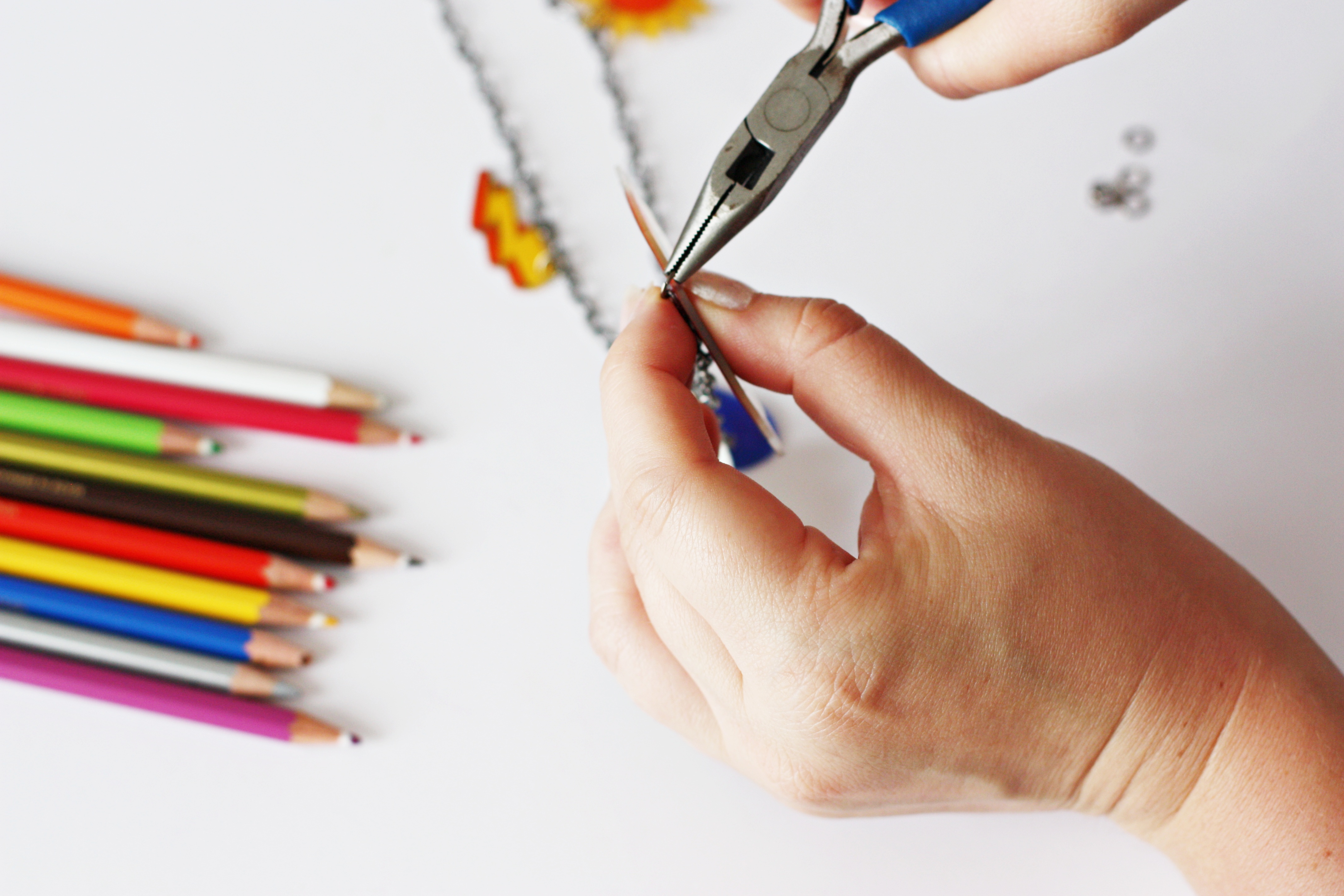 Étape 7 : Passez vos anneaux et montez vos petites formes sur la chaîne.