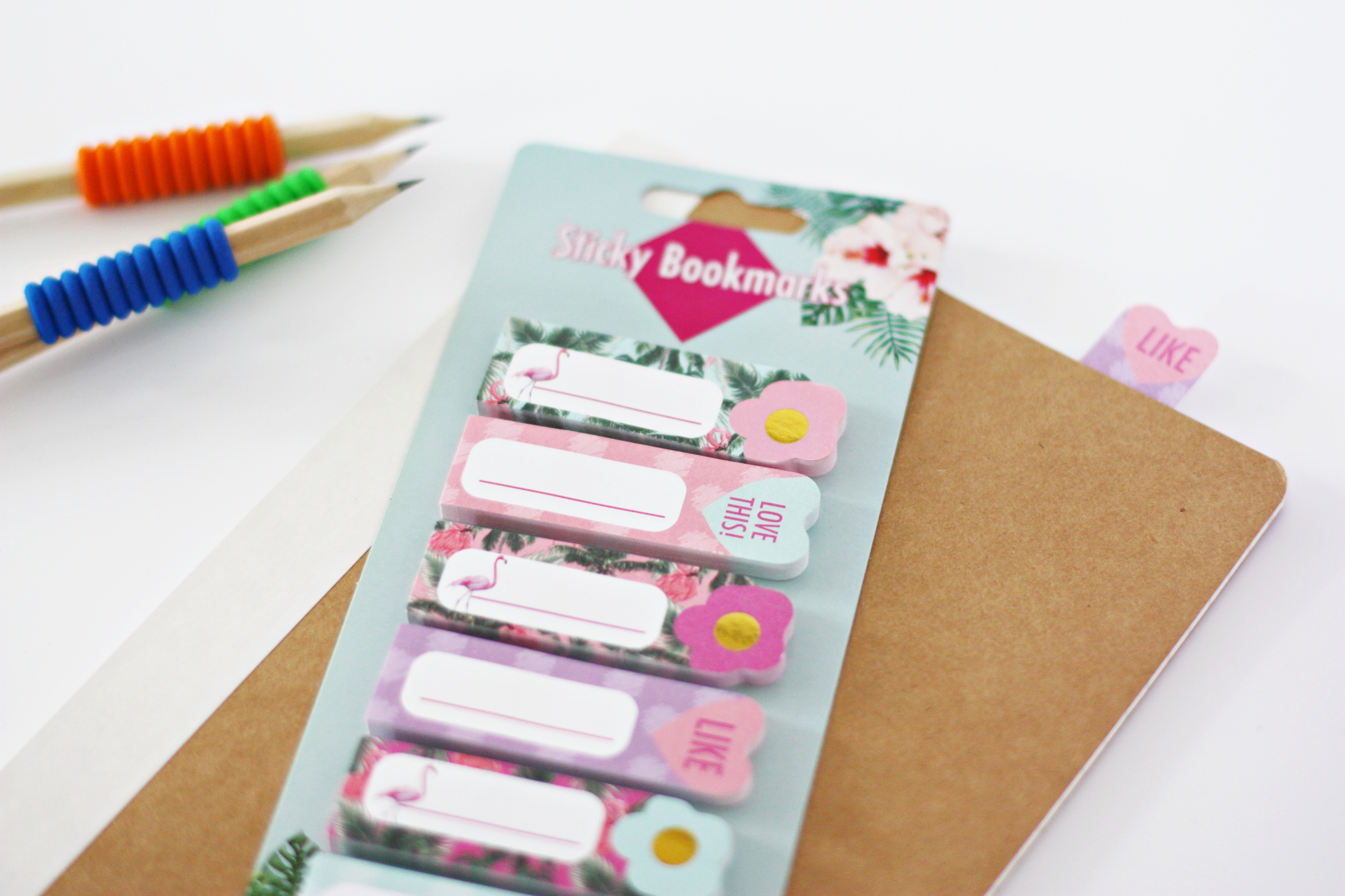Au détour d’un rayon, je suis tombée sur des marques-pages autocollants à seulement 55 centimes ! (quelle aubaine). Après avoir bien fouillé parmi tous les motifs, j’ai opté pour un paquet d’autocollants avec des flamants roses (so girly) et un autre que je vous présenterais plus tard dans mon article DIY. Il y a 6 paquets de 50 stickers. Ils sont petits et surtout vraiment très pratique avec un encart blanc pour y noter ses matières, chapitres, etc… Même s’ils ne sont pas parfaits (on voit que le cœur est a peu près centré) au prix où je les ai trouvés, je ne vais pas chipoter.