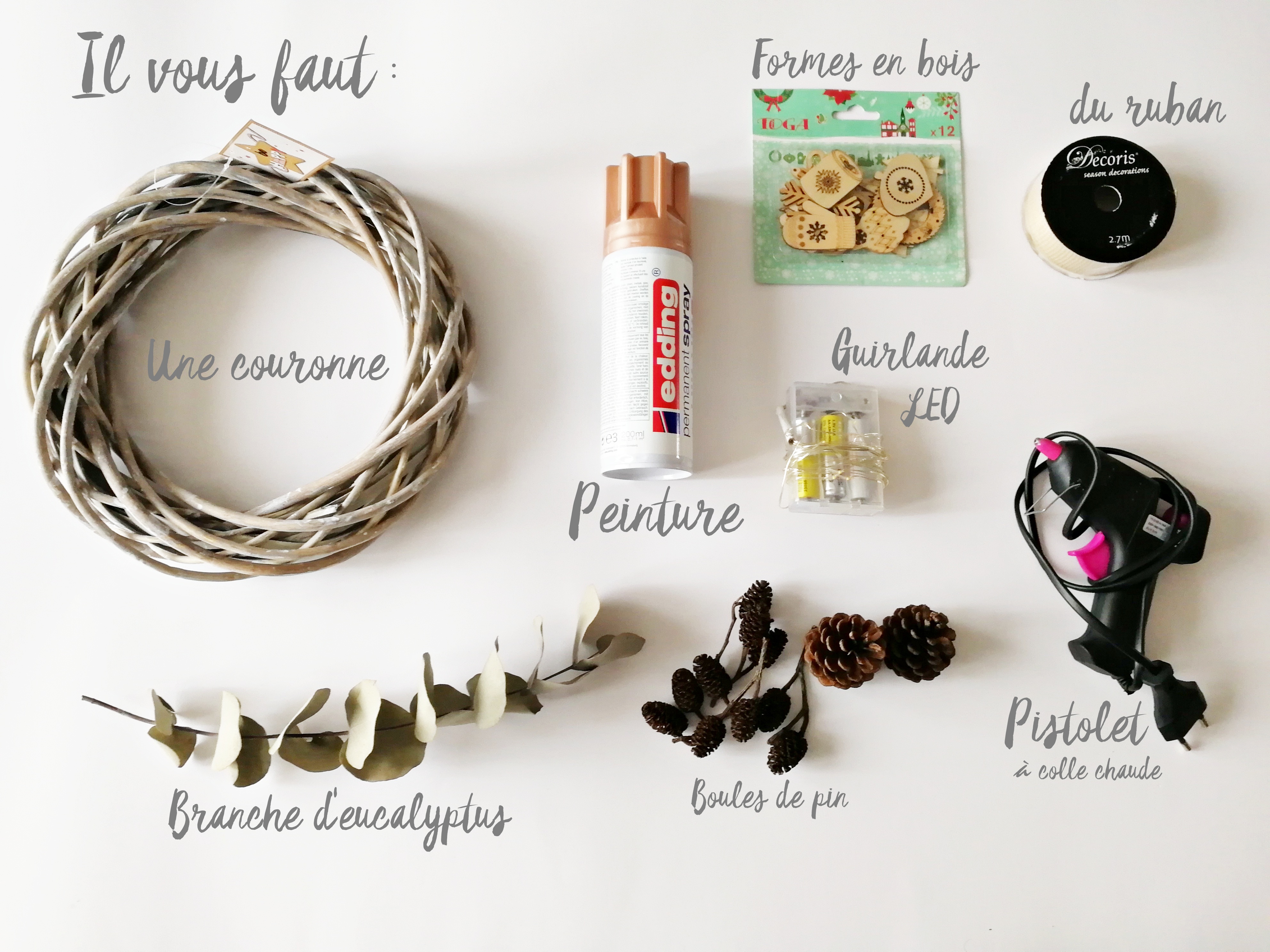 Bref, cette fois-ci, je me lance dans la création de couronne de Noël ! C’est un challenge que je voulais réaliser déjà l’an dernier sans avoir eu le temps. J’ai donc pu largement réfléchir à ma décoration et à ce que je voulais faire pour cette année. Je vous propose donc un DIY Express : le DIY rapide à faire et qui fait toujours son petit effet sans y laisser toute sa paie.