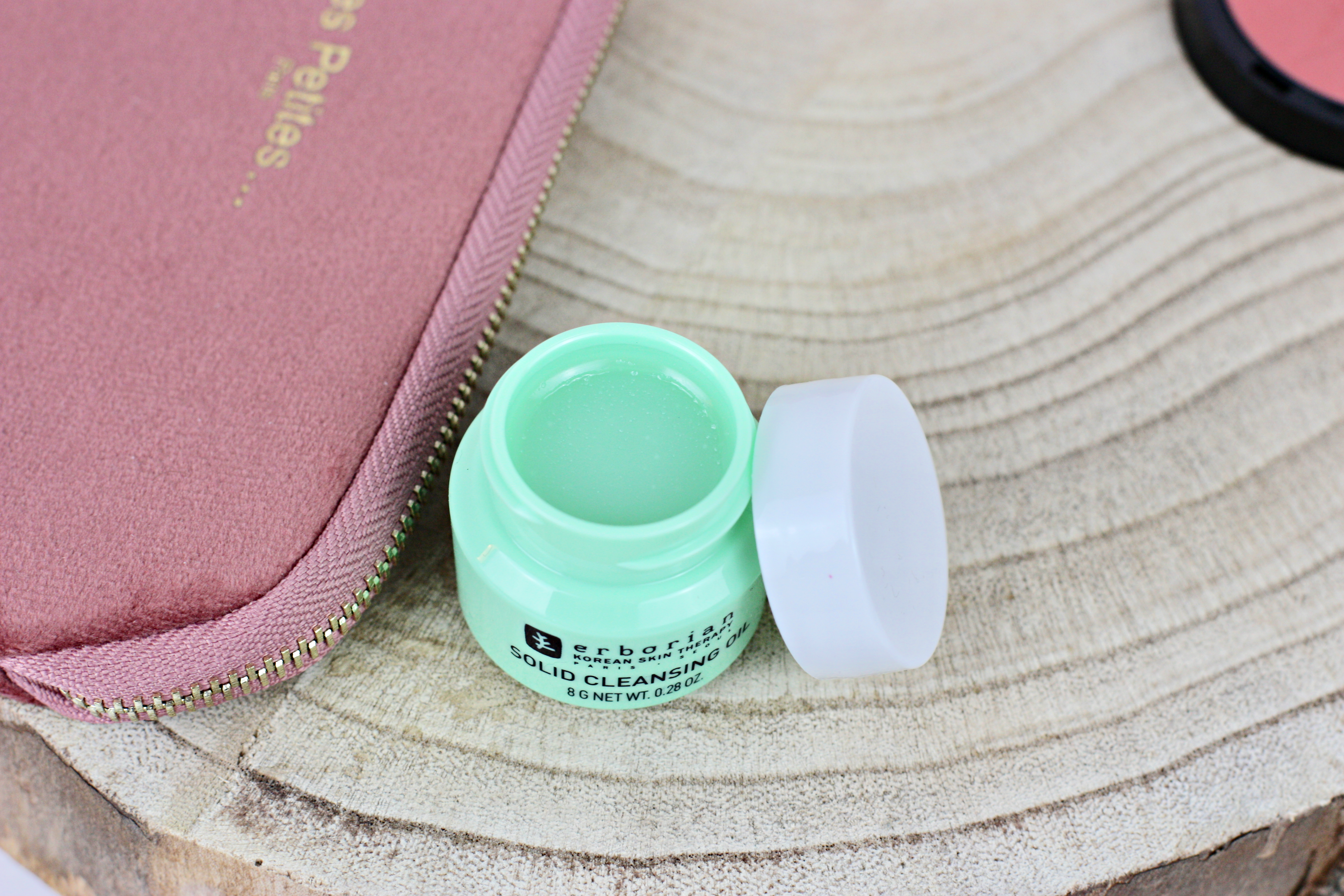 Je vous présente la mini Solid Cleansing Oil de la marque ERBORIAN, une huile 2 en 1 qui s’inspire du rituel du double nettoyage coréen. Sa texture solide se transforme en une huile onctueuse au contact de la peau sèche et élimine le maquillage et les impuretés. Dès que l’on ajoute de l’eau, elle se transforme en un lait qui parfait le nettoyage et laisse la peau toute douce. L’odeur est très agréable, la texture est très cocooning, elle m’a vraiment plu contrairement aux autres huiles démaquillantes. J’ai été bien contente de la découvrir dans cette pochette car je pense investir à l’avenir dans ce genre de produit, mais son format dans la boîte est juste minuscule. Le full size, fait quand même 33€ ce qui n’est pas rien, mais s’il peut remplacer 3 produits nettoyants à la place, pourquoi pas. Le petit plus, non négligeable ? c’est qu’il n’y a pas besoin de coton ! Parfait pour l’environnement.
