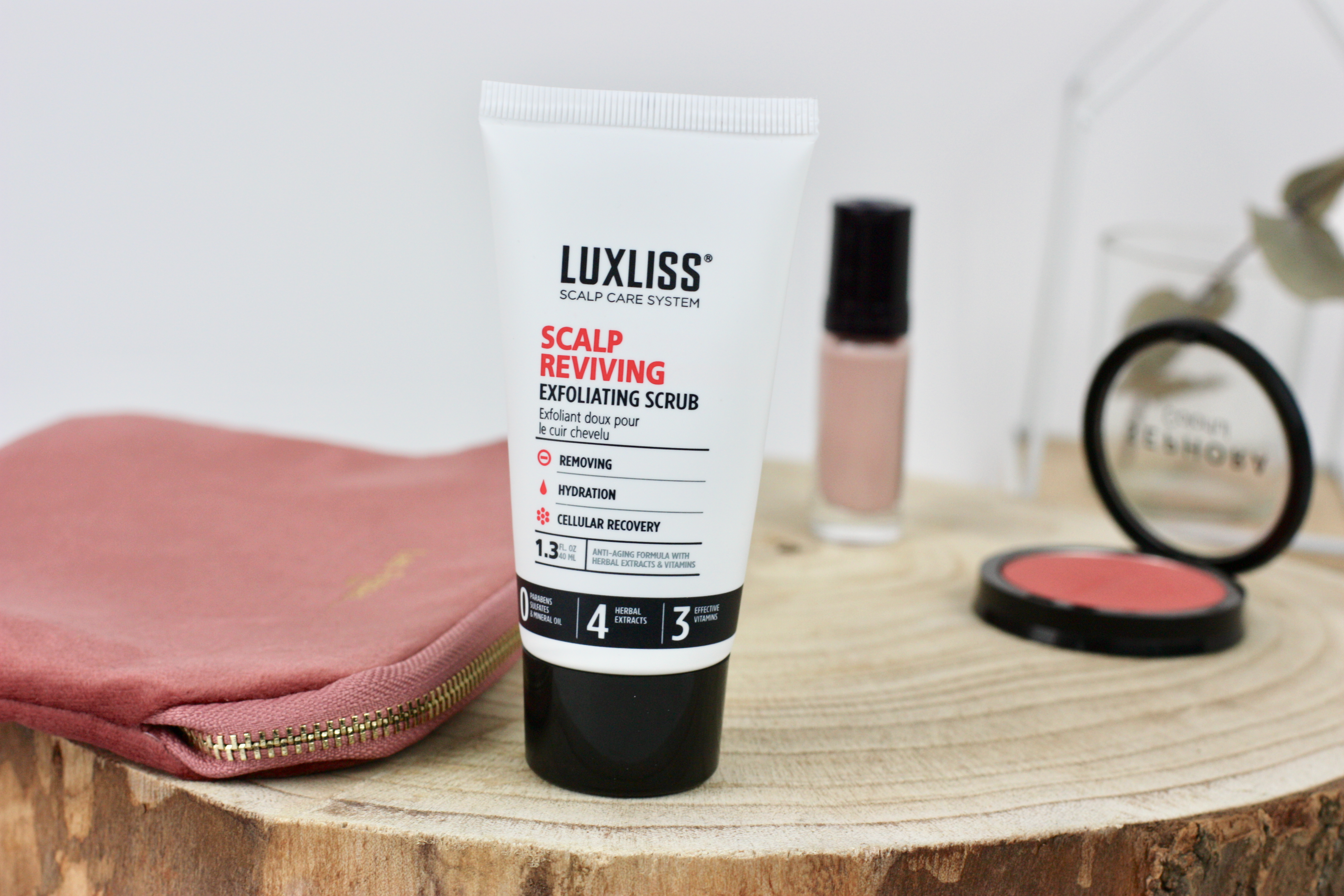 Enfin le dernier article de cette collaboration est le Scalp Reviving Exfoliating Scrub de la marque LUXLISS. Alors, alors… c’est un soin exfoliant pour le cuir chevelu. « Cet exfoliant purifie en profondeur et prévient de la chute de cheveux en accélérant la circulation du sang. Dites adieu aux pellicules et cheveux gras. » Moi quand je lis accélération de la circulation du sang, je me dis direct que c’est bizarre et au vu de la composition, je ne le rachèterai pas du tout. Je ne connaissais pas les gommages du cuir chevelu et honnêtement, je trouve ça plutôt gadget. De plus ayant les cheveux long, j’ai eu un peu de difficulté pour vraiment l’appliquer sur le cuir chevelu mais vous me connaissez je ne me laisse pas abattre si facilement et j’ai retenté. Au final, le produit peut vraiment convenir pour les citadines et la pollution quotidienne mais bon je n’y vois pas de valeur ajoutée pour ma part.