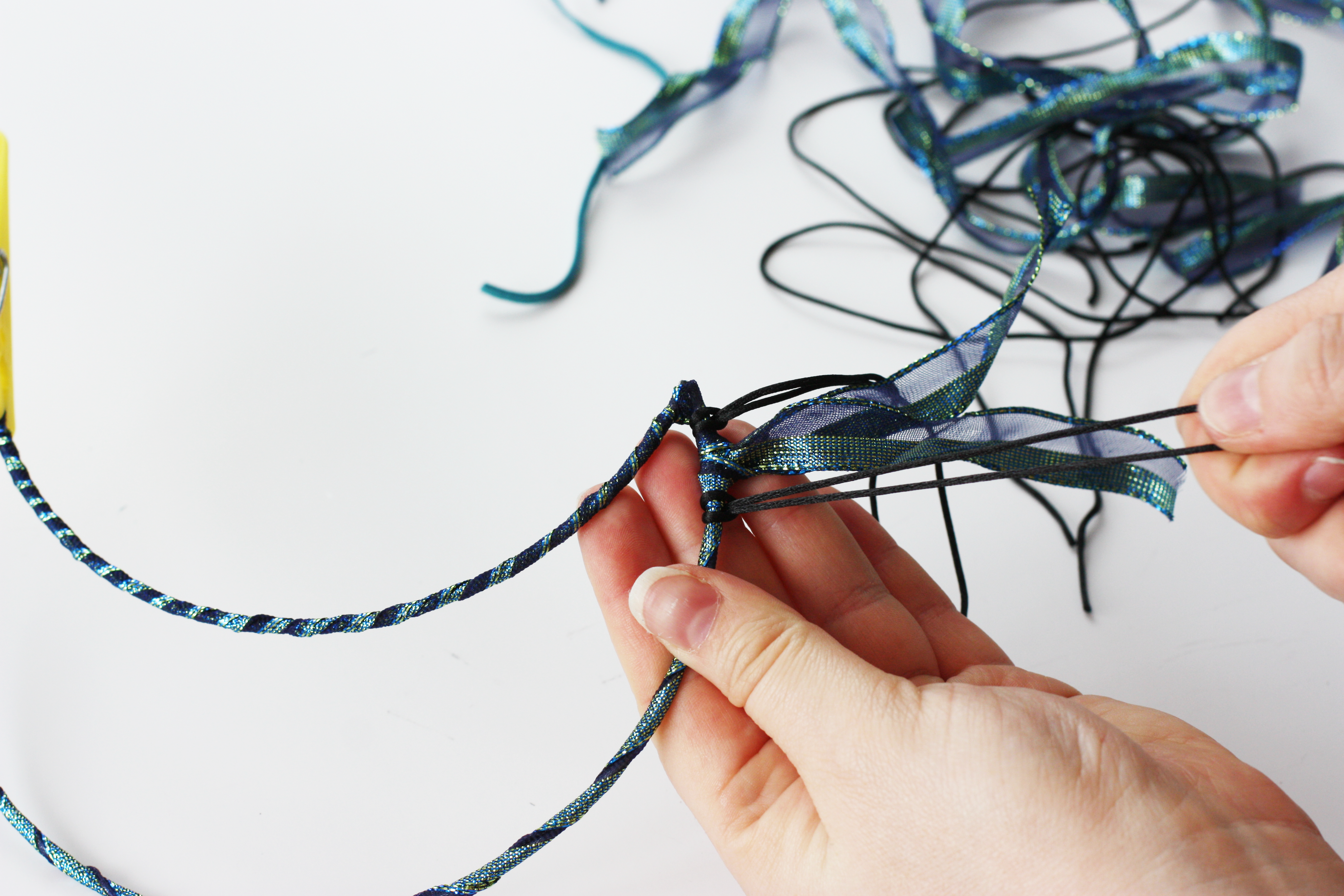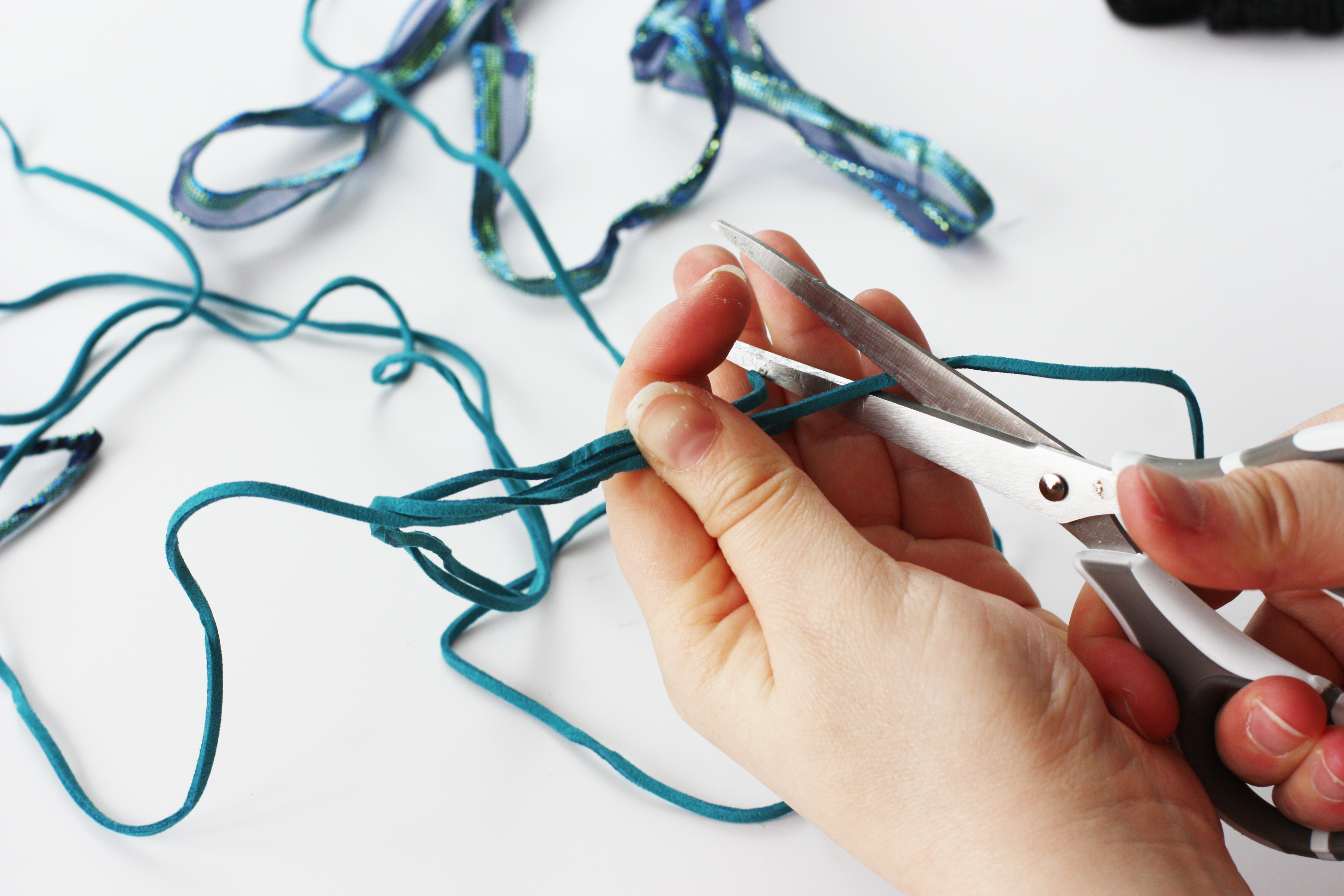 Étape 2 : Découpez des longueurs de fil, de suédine et de ruban de la même longueur.
