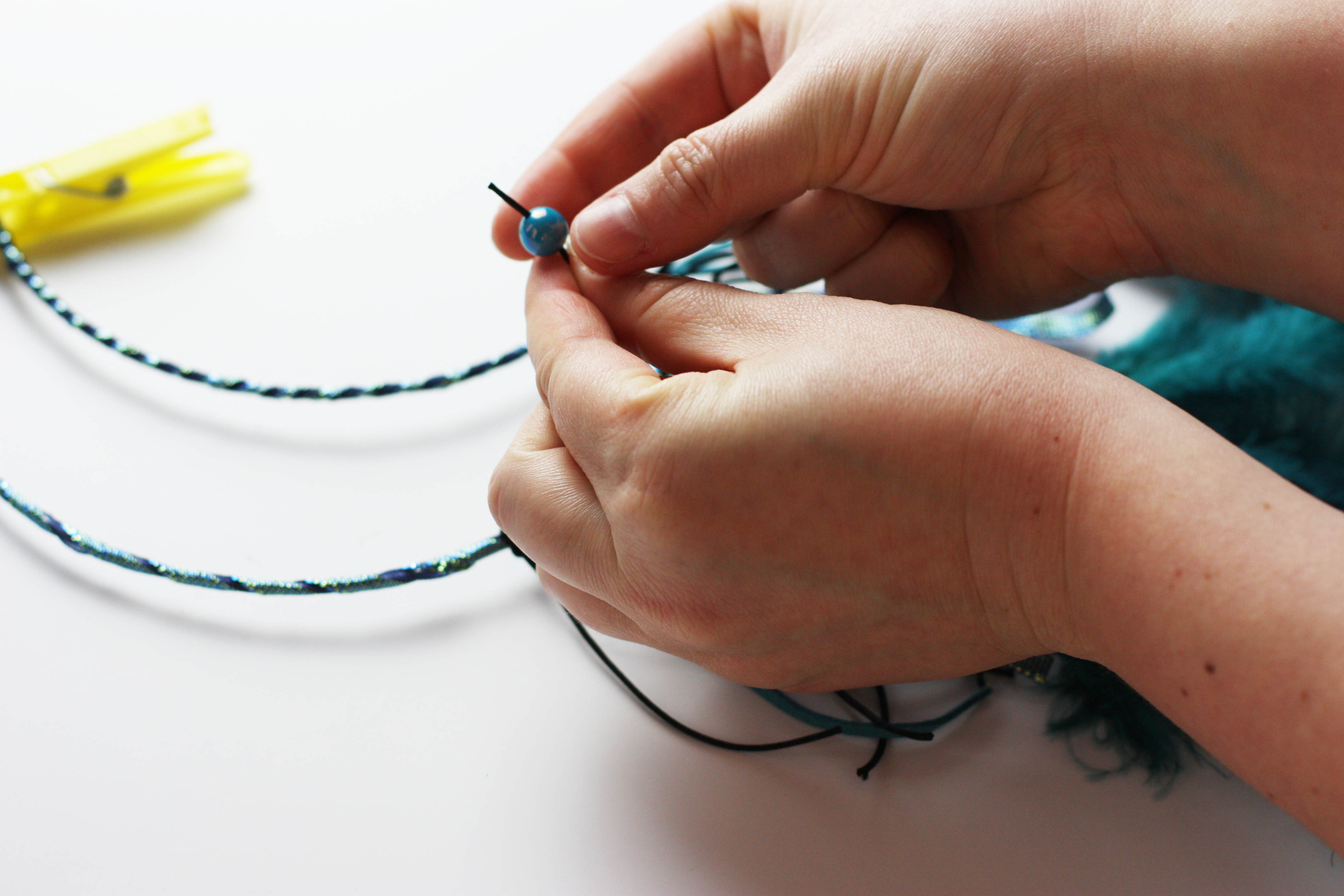Étape 6 : Enfilez les perles rondes sur les fils de couleur noir.