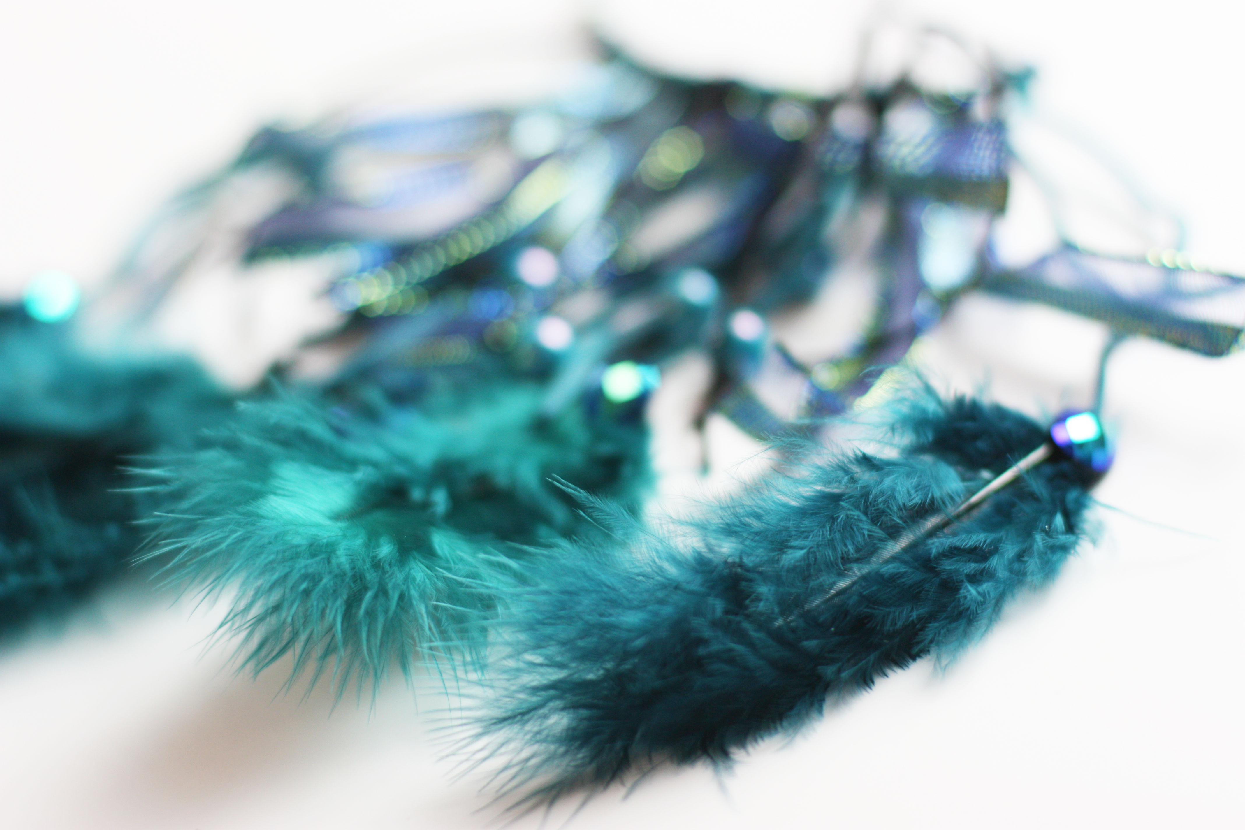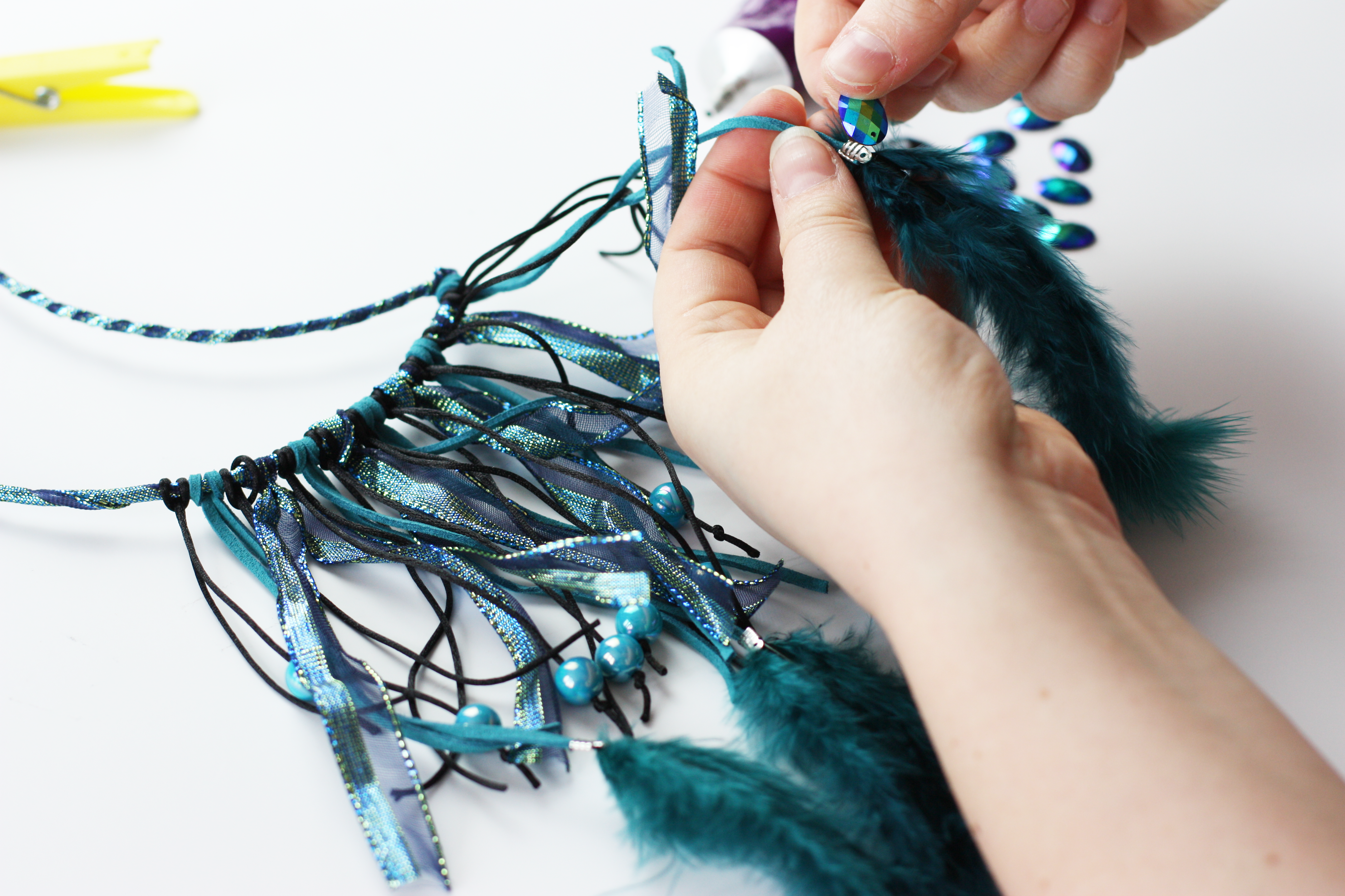 Étape 7 : Collez les perles facettées sur le haut des plumes pour cacher les embouts.