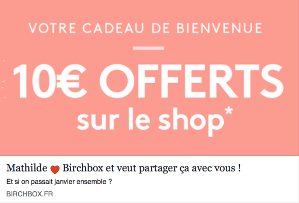 En utilisant ce lien ci-après : https://birchbox.fr/r/honeyjune ou sur l’image au ci-dessous, vous recevrez en cadeau 100 points qui équivaut à 10€ à valoir sur le shop Birchbox sans minimum d’achat.