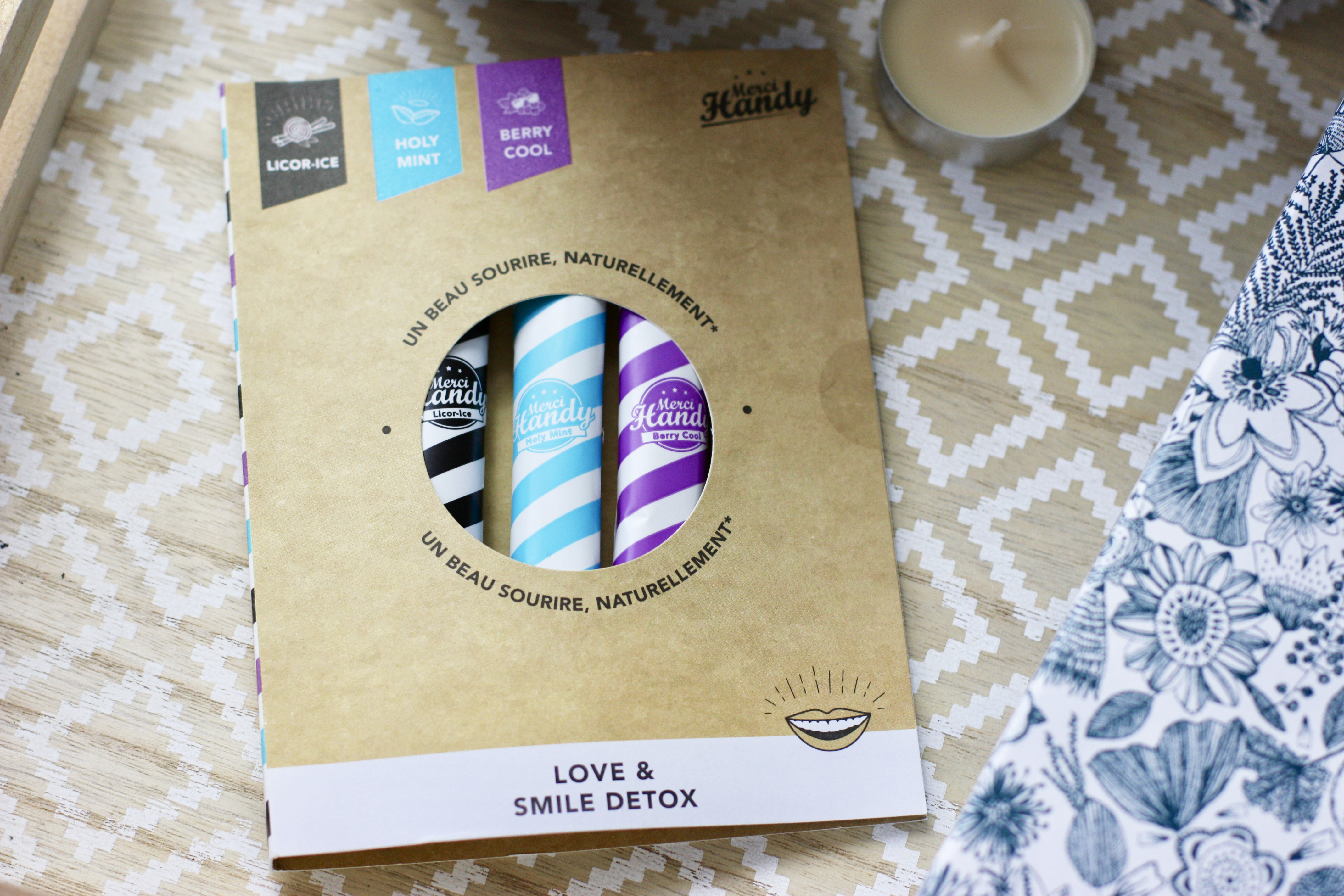 Qui ne connait pas Merci Handy ? À la base j’ai découvert cette marque avec leur gel antibactérien qui sentait la vanille au nom hyper fun. Puis ils ont élargis leur gamme avec des baumes à lèvres, des bougies etc… Dans cette Birchbox, vous avez 3 jours de Smile Détox, de l’oil pulling (une méthode ancestrale de nettoyage des dents) revisitée à la sauce Merci Handy. Vous avez donc 3 sticks d’huile de coco, du charbon actif et des senteurs comme Licor-ice, Holy Mint ou encore Berry Cool pour se lancer dans la quête du sourire de star.