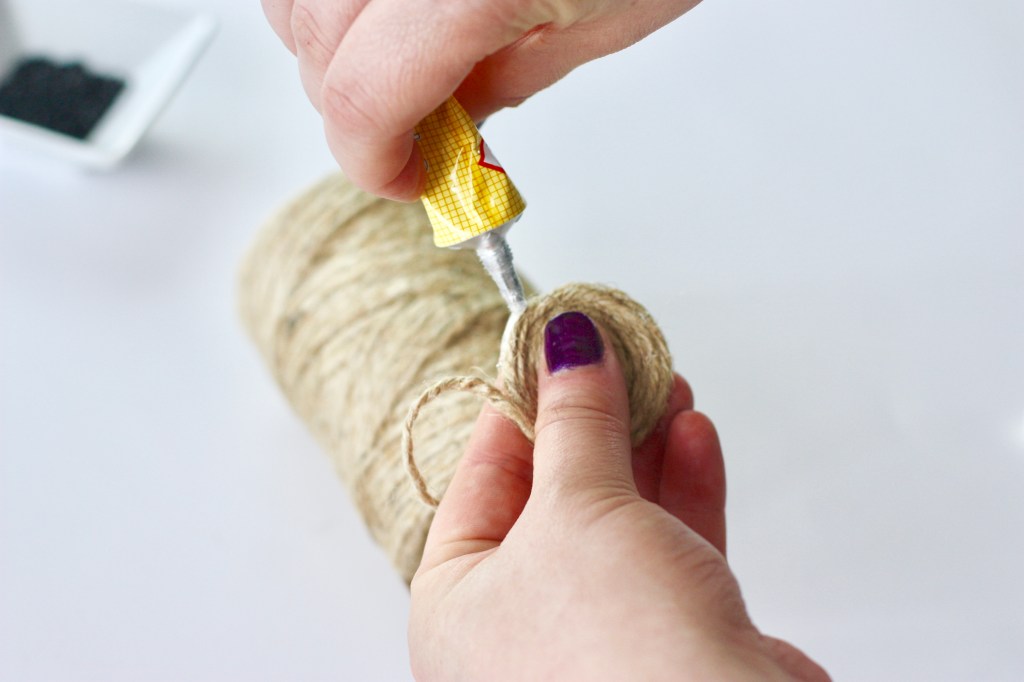 Étape 9 : Encollez votre corde avec de la colle liquide et roulez votre fil de perles.