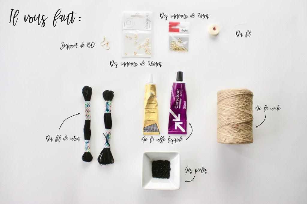 Aujourd’hui je vous propose un petit tuto mode et plus particulièrement accessoire ! Avec mon addiction aux boucles d’oreilles je reviens donc avec un tuto d’inspiration Boho. Mélange de coton et de corde, voici les boucles d’oreilles pendantes comme la célèbre marque espagnole.