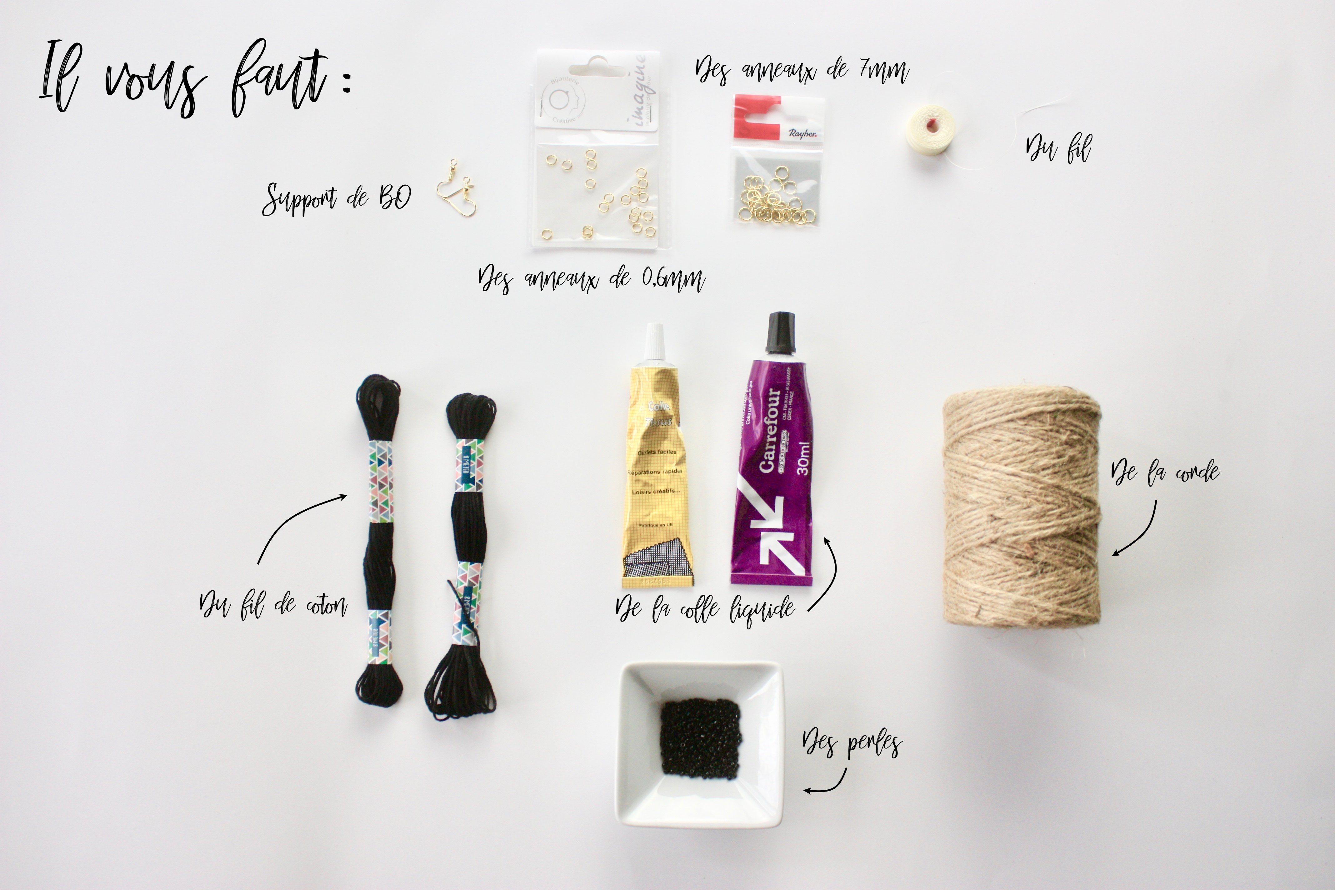Je suis vraiment tombée sous le charme de cette paire de boucle sur le site de Mango. Mais comme vous me connaissez, parfois je n’ai pas envie d’investir quand j’ai le matériel à la maison. Vu que c’est la grande tendance des paniers en osier, de la corde et de la paille ainsi que des pompons, je me suis dit : pourquoi pas ! Lorsque j’ai fait une escapade shopping, j’ai trouvé une grosse bobine de corde en jute chez Action pour 3x rien, c’était donc un signe.