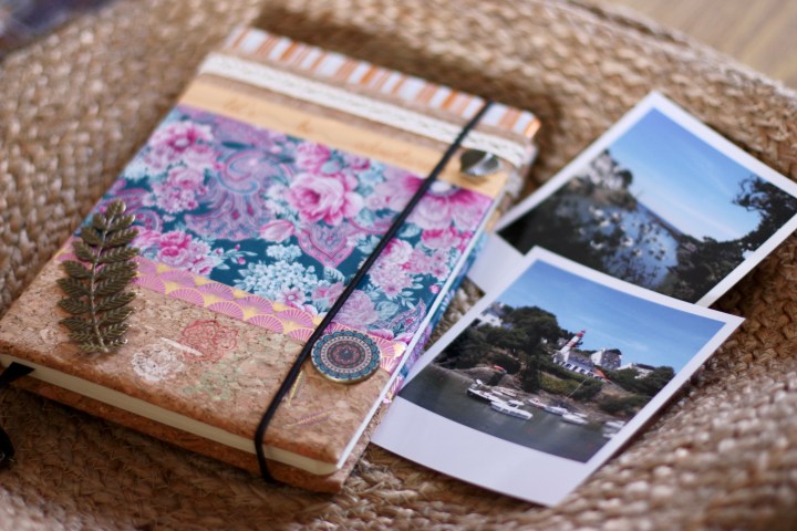 J’ai eu envie de me fabriquer un carnet de voyage, une sorte de journal intime avec les souvenirs de vacances, les choses glanées ici et là, les photos importantes, les anecdotes… Et toutes les petites choses que l’on laisse généralement au fond des poches ou des tiroirs. J’aime beaucoup l’idée de pouvoir l’alimenter au jour le jour lorsque l’on est sur le terrain.