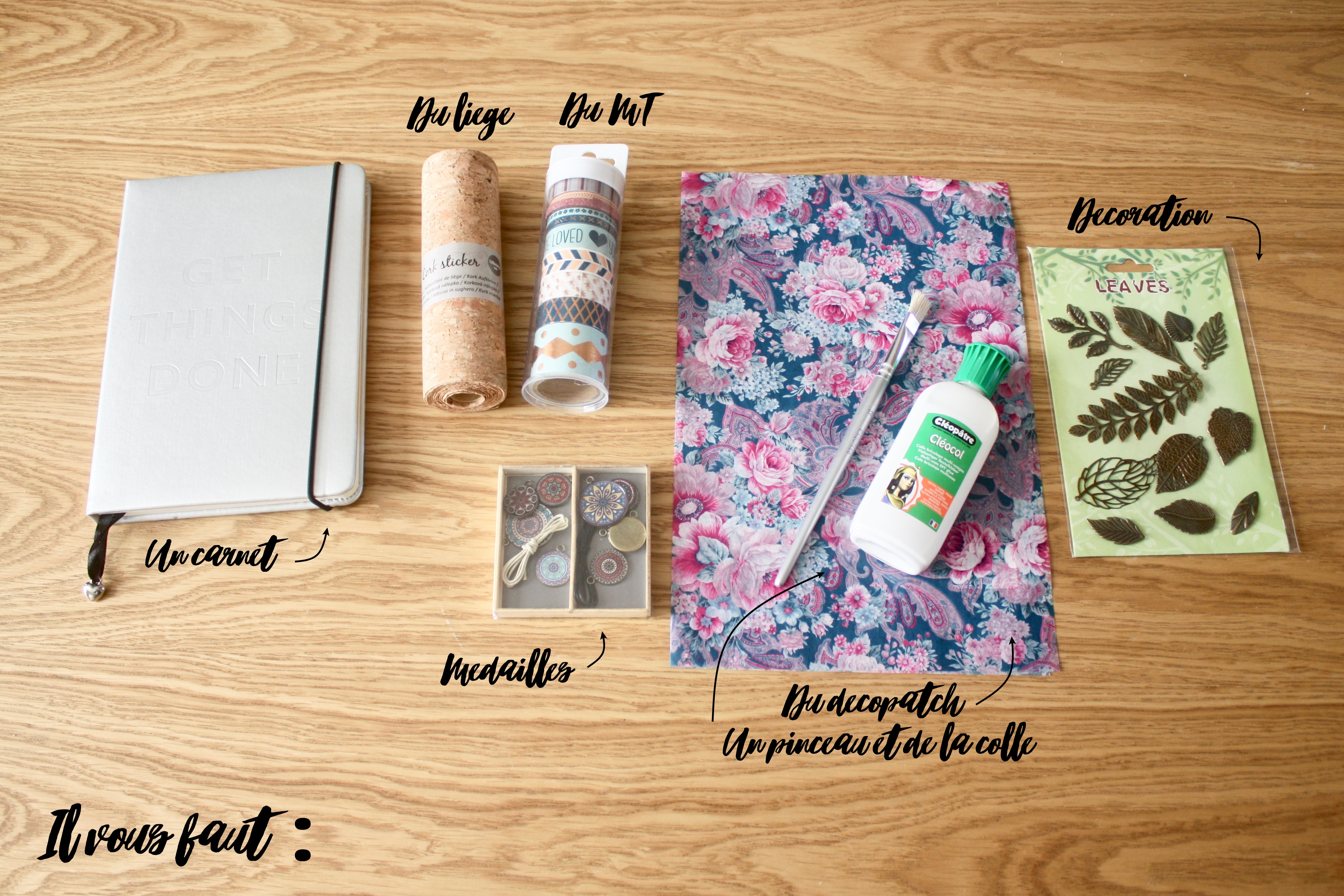 Étape 7 : Ça c’est le passage que je préfère : la customisation. Des fleurs, des tampons, des autocollants… Tout ce dont vous jugez assez sympa pour agrémenter votre première de couverture.