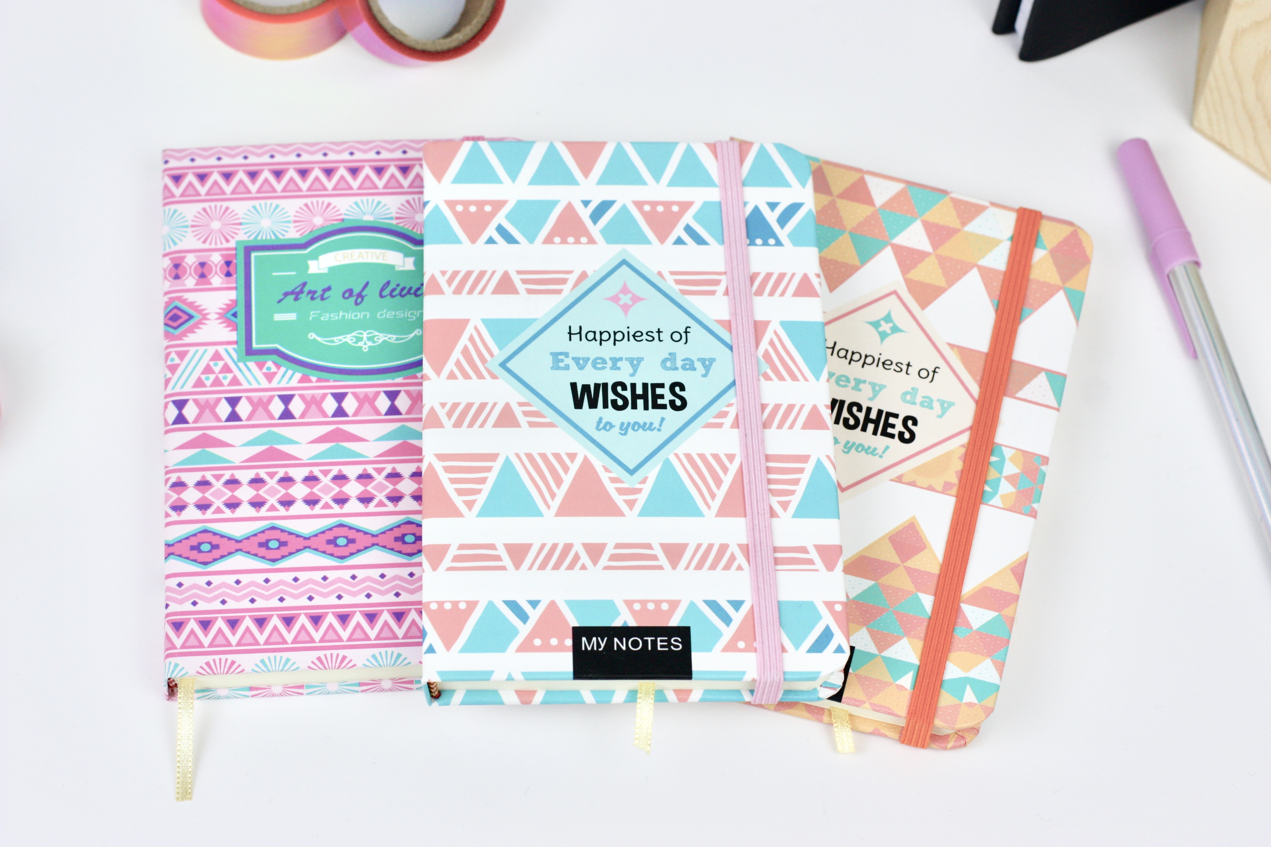 Mon deuxième achat carnet a été chez Noz. Je suis tombée totalement par hasard sur un bac de vrac où il y avait des livres des feuilles… et là : des « minis » carnets fantaisies aux teintes assez pops. Ce sont des carnets lignés avec une couverture assez rigides et une fermeture par élastique. Ils ne sont pas très grand (14 cm x 9 cm) et j’ai vraiment craqué pour leur coloris. Ils étaient aux prix de 1,20€ alors forcément je n’allais pas les laisser là.