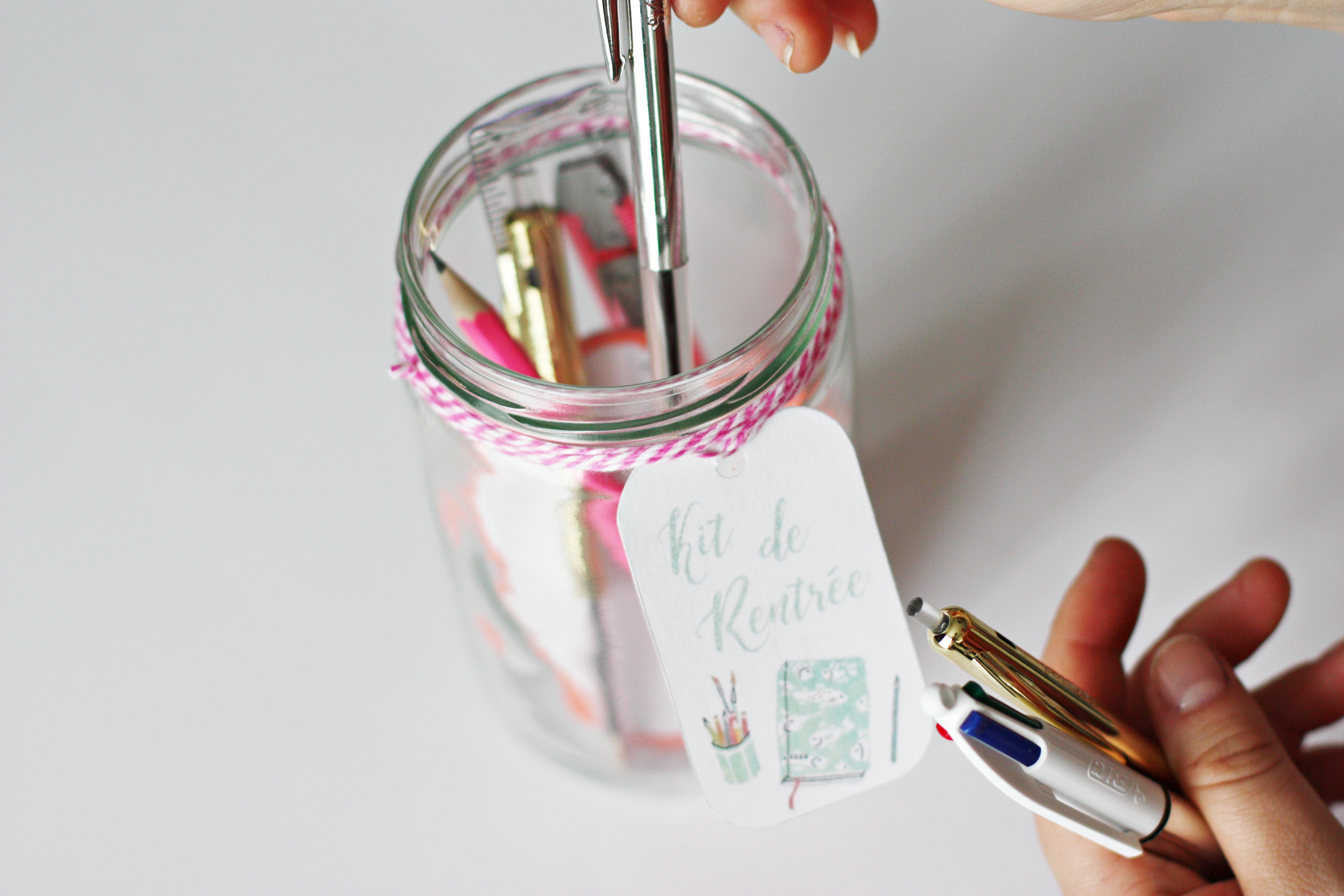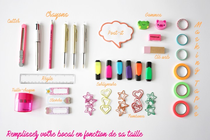 Étape 5 : Remplissez votre bocal de fournitures et refermez-le ! Vous êtes parés pour une rentrée au top et surtout organisée.