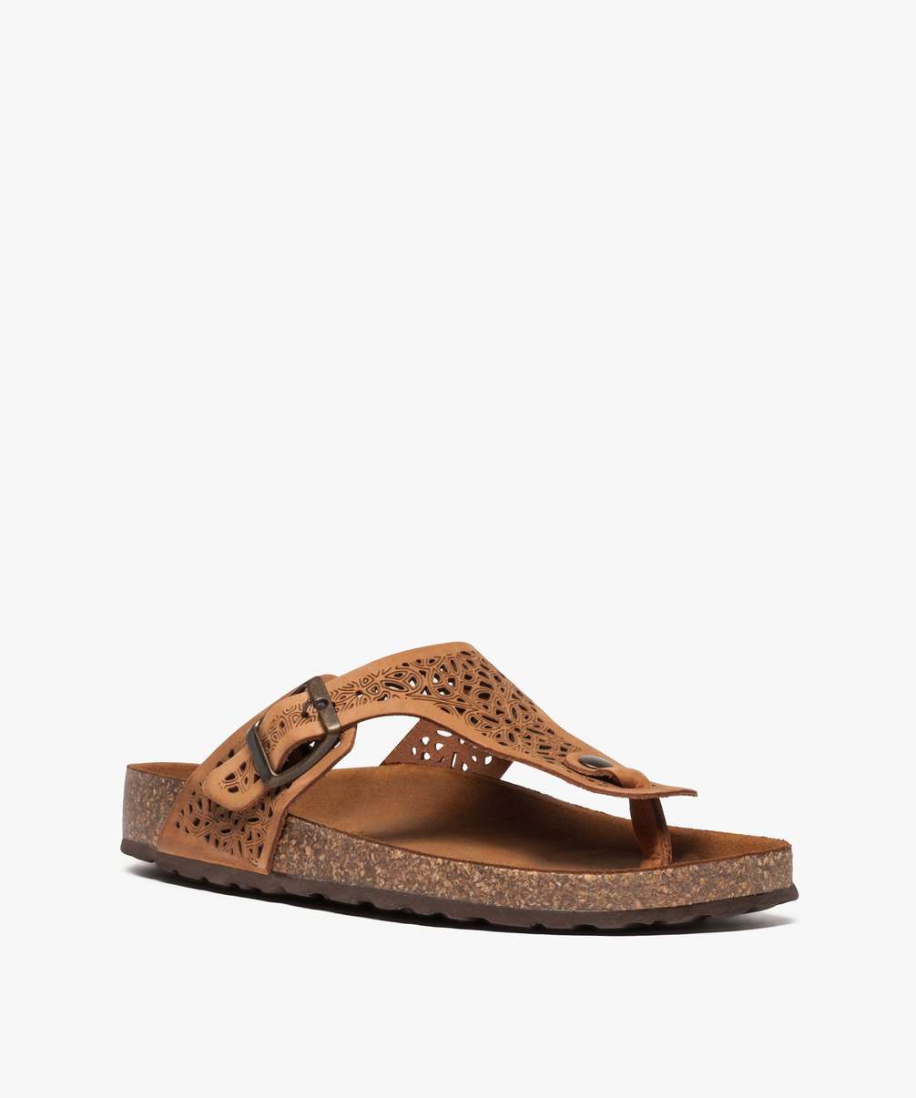 La sandale en deuxième position est un dérivé de la Birkenstock. Je l’ai trouvé sur le site de GÉMO à un prix défiant toute concurrence et son design est vraiment sympa. Elle est de coloris camel et son cuir de vachette est ajouré, de petits motifs style mandala / floraux très fins. Je les trouve vraiment très jolies et pratiques.