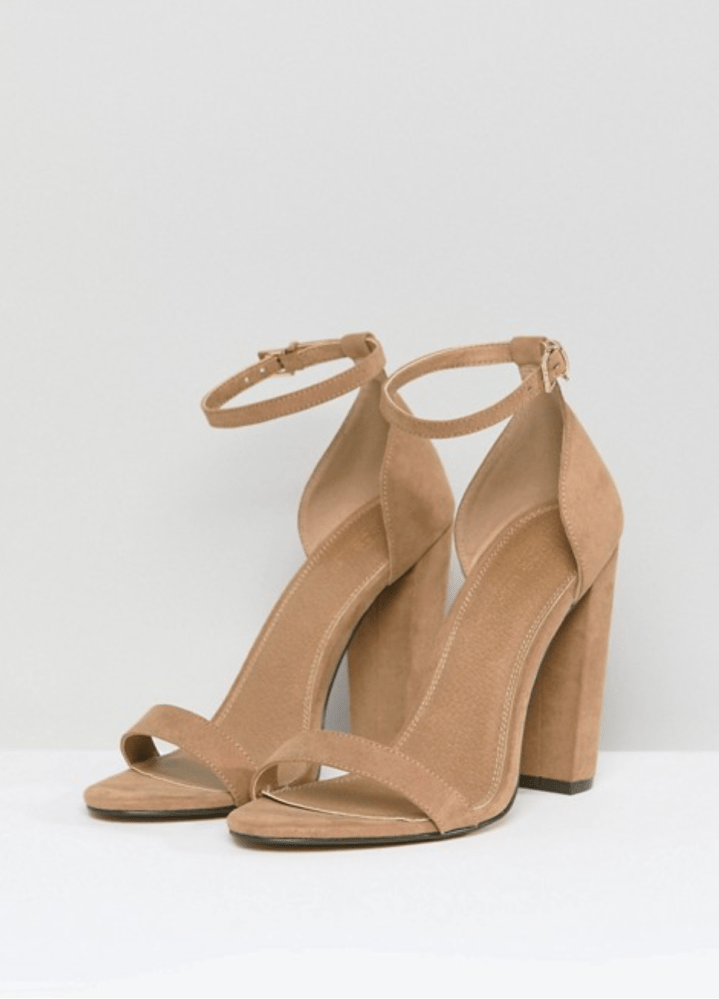 La troisième paire que j’ai sélectionné est le coloris beige foncé du modèle Highball d’ASOS DESIGN. C’est un modèle tout à fait classique avec une bride très fine mais dont le talon fait 11 cm, un talon vertigineux pour sublimer la jambe bronzée. Elle est aussi disponible en noire ou imitation serpent sur le site si la couleur ne vous plait pas.