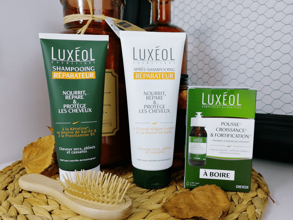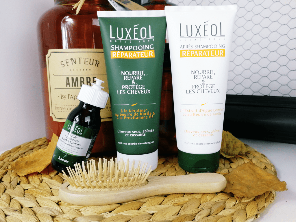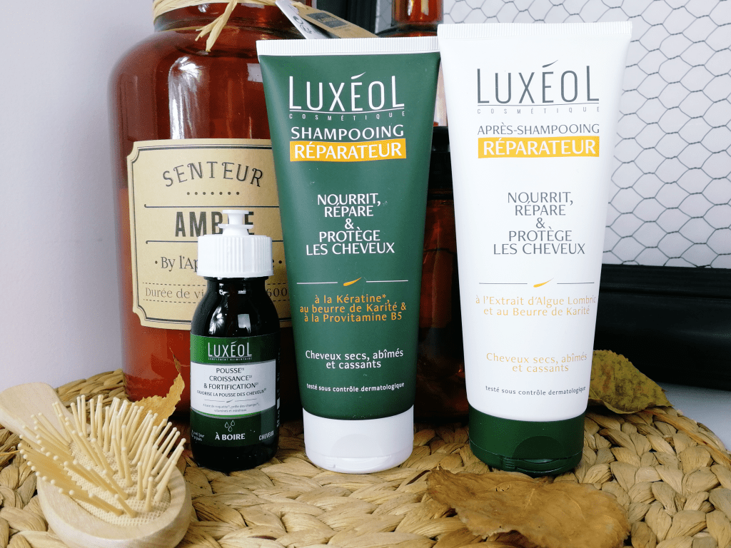 Il y a quelques semaines, j’ai eu la chance d’être sélectionnée par Luxéol via la plate-forme Hivency pour recevoir un shampoing et un après-shampoing de la gamme Réparateur ainsi qu’un flacon de complément alimentaire Pousse, Croissance et Fortification à boire . Cette collaboration tombe donc à pic !