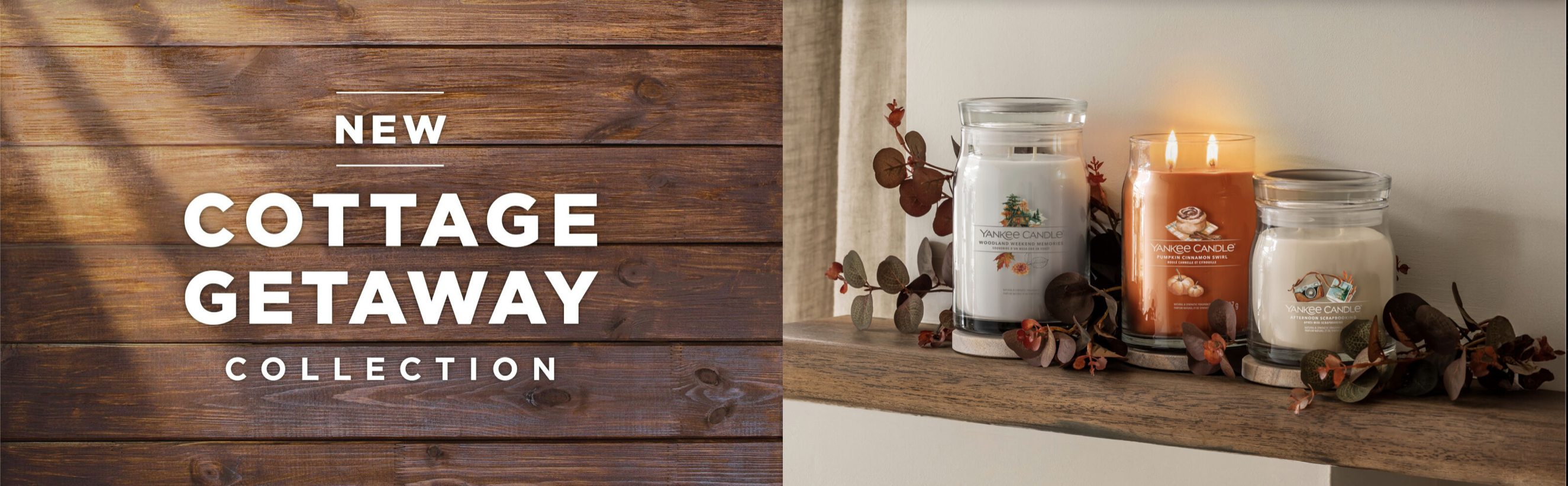 Voici la Cottage Getaway Collection (Collection Escapade en Chalet), une nouvelle gamme de bougies qui se compose de 3 fragrances cette année, contrairement à la collection de l’année dernière qui en comptait 4. Vous avez donc Woodland Weekend Memories (Souvenirs d’un weekend en forêt), Pumpkin Cinnamon Swirl (Roulé Cannelle et Citrouille) et Afternoon Scrapbooking (Après-midi scrapbooking).