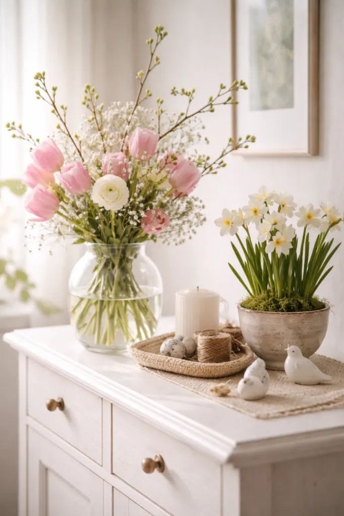 Même si mon cœur bat passionnément pour l’automne, toutes les saisons ont leur spécificité. Avec les premiers rayons du soleil et les bourgeons qui s’éveillent, le printemps est la saison idéale pour insuffler une touche de fraîcheur et de légèreté à son intérieur. La décoration printanière, c’est l’art de marier les couleurs tendres, les matières naturelles et les petites attentions qui appellent au renouveau.