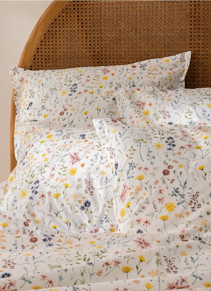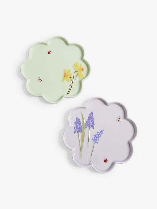 Coussin tricot fleur écru chez Bouchara – 24,99 € / Photophore en verre coloré forme pétales de fleur prune chez Bouchara – 5,99€ / Ensemble de 2 verres de cocktail Ottilie chez Next – 27€ / Ensemble de 2 assiettes à dessert fleurs chez Next – 20€ / Nappe Lila à imprimé floral chez Next – 29€ à 34€ (en fonction de la taille) / Ensemble de 2 assiettes à pâtes fleurie chez Next – 29€ / Corbeille carré doublure coton chez Zara Home – 9,99€ / Housse de couette percale Farrah chez Bouchara – 119,99€ / Rideau imprimé fleurs des champs chez Bouchara – 79,99€ / Grande bougie parfumée muguet avec pot en verre chez H&M – 29,99€